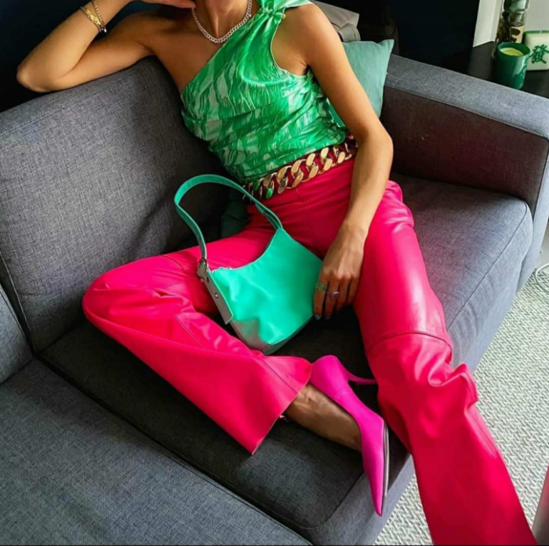 Зеленоватый с розовым в одежде