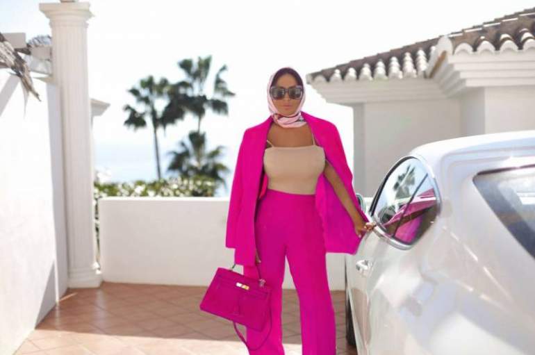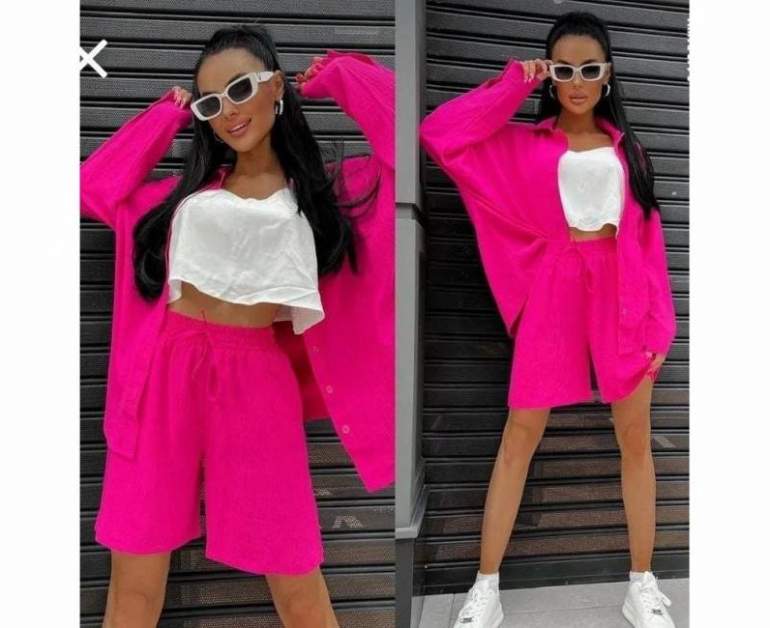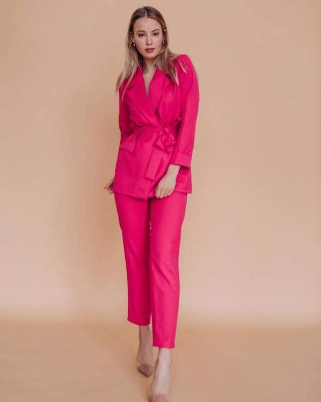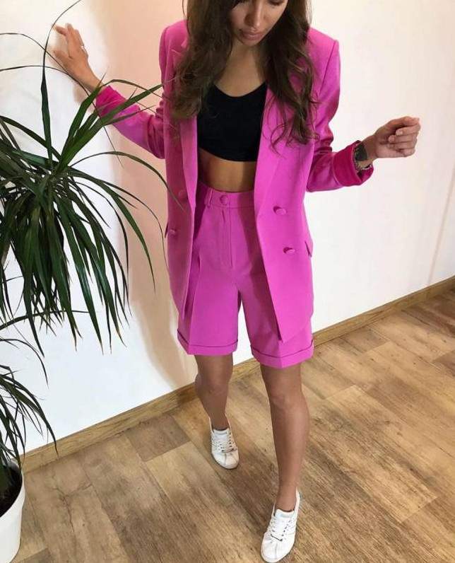 Костюмчик ярко розовый в 35 лет брюнетке