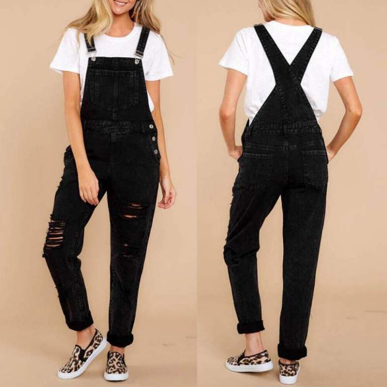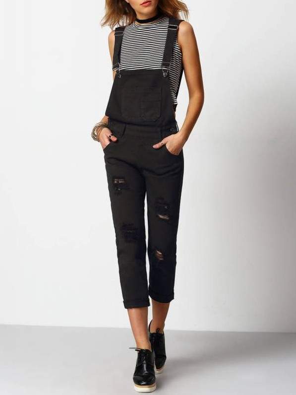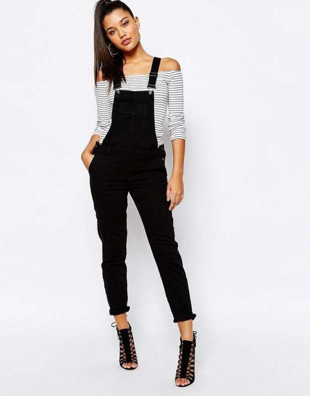 Чёрный джинсовый комбинезон дамский