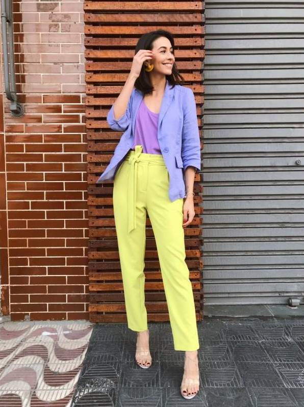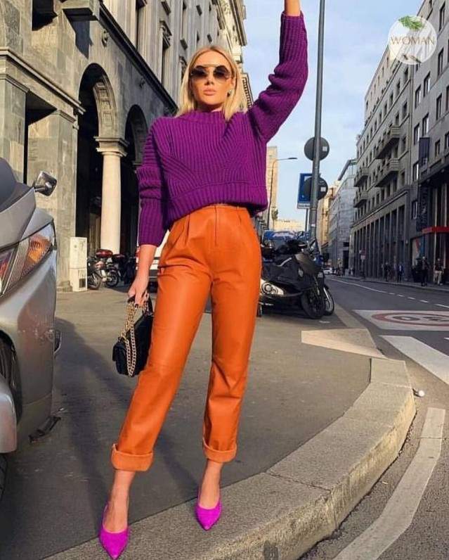 Красивая женщина в цветных брюках