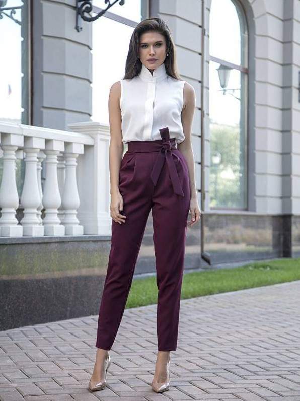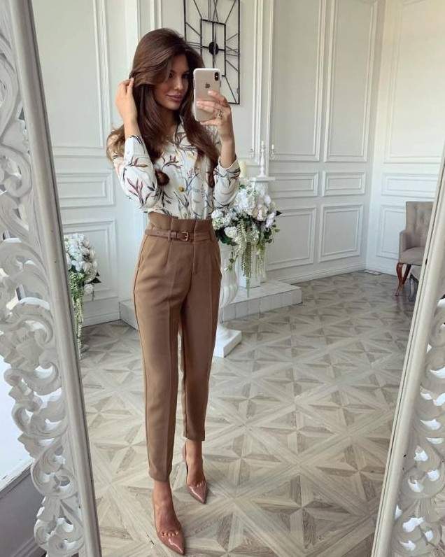 Девушка красавица в брюках и блузке