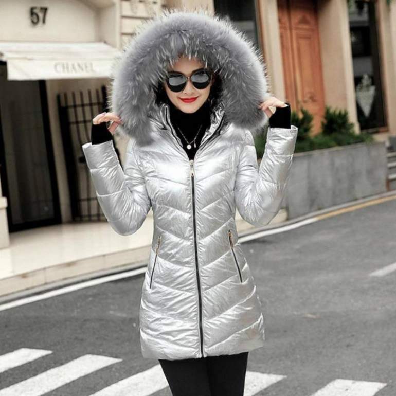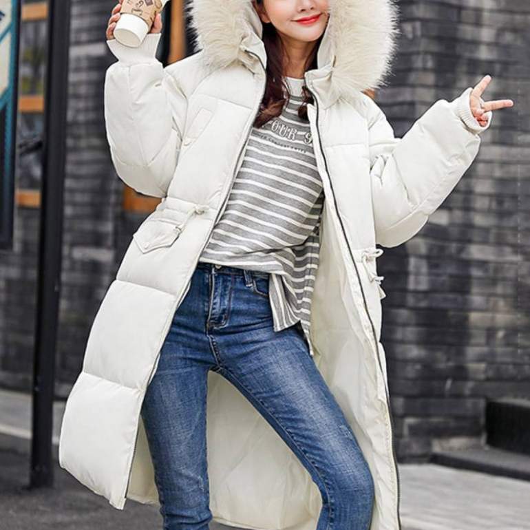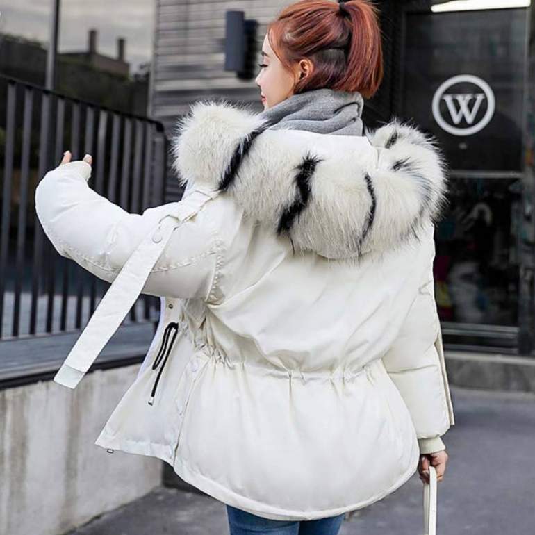 Куртка зимняя c капюшоном иск мех oupaizhijia women s Fashion