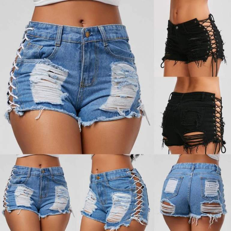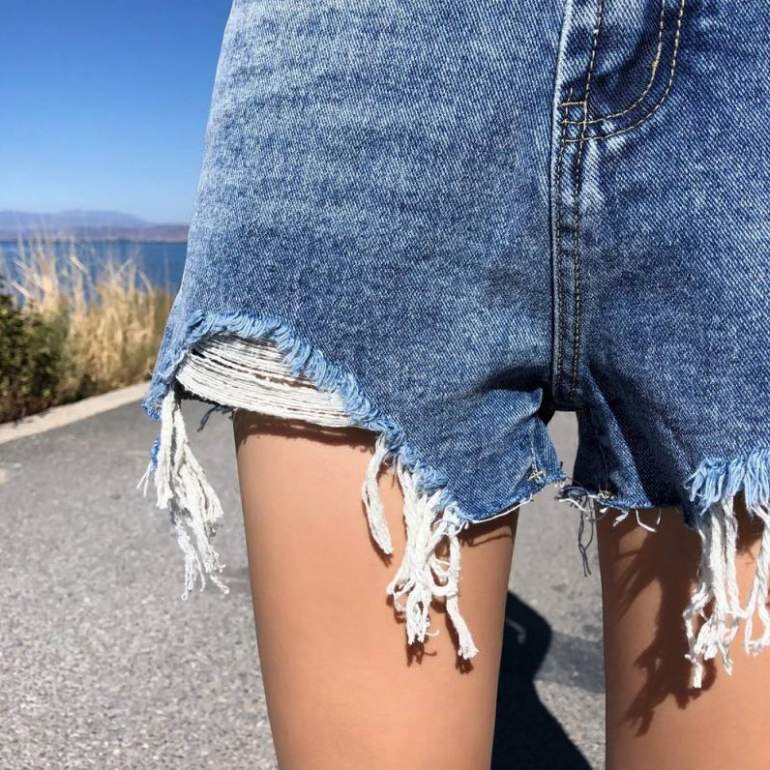 Девушки в рваных джинсовых шортах