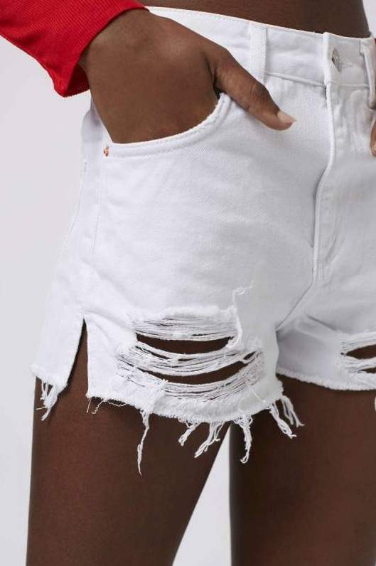 Недлинные белоснежные драные шорты
