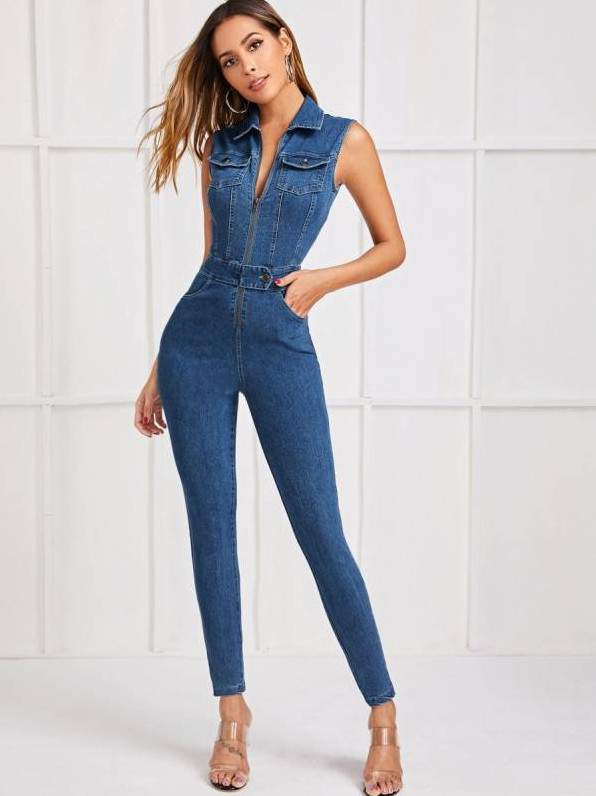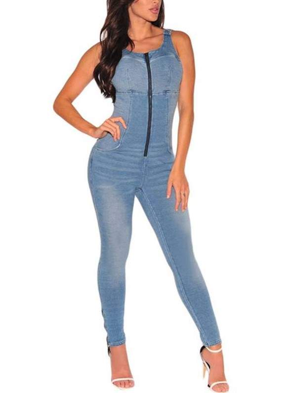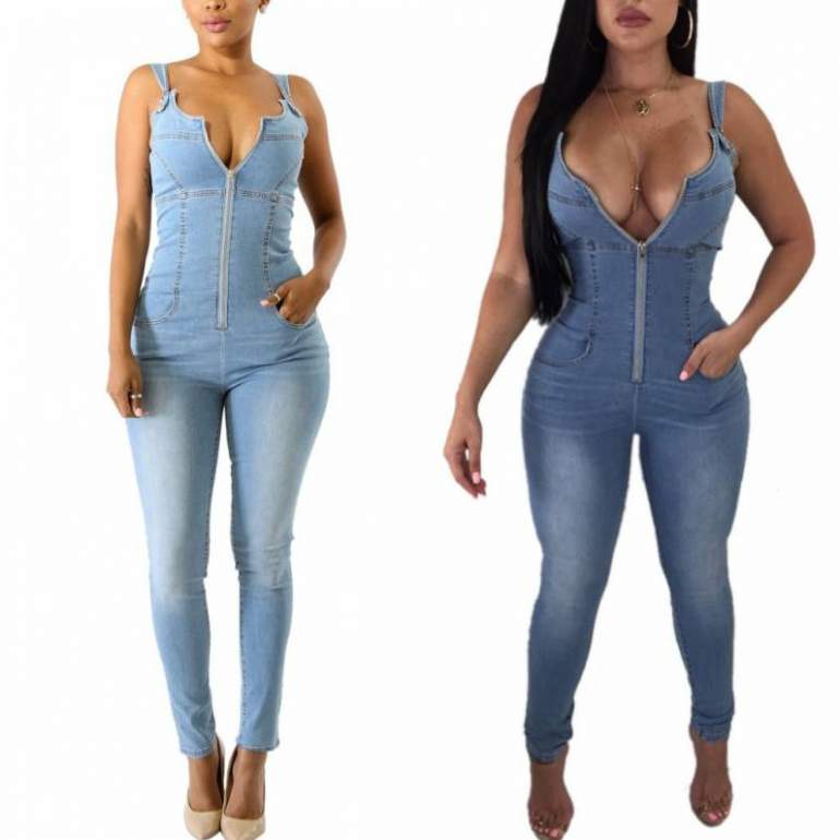Дамский облегающий джинсовый комбинезон на молнии