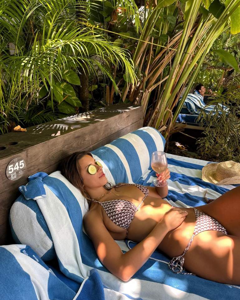 В июле и августе 2023 года Девин Бругман поделилась с подписчиками на своей странице в Instagram невероятно красивыми фотографиями, которые были сделаны на пляже в Гавайях. На снимках Девин предстала в различных купальниках, которые подчеркивали ее прекрасную фигуру и обнаженные плечи.