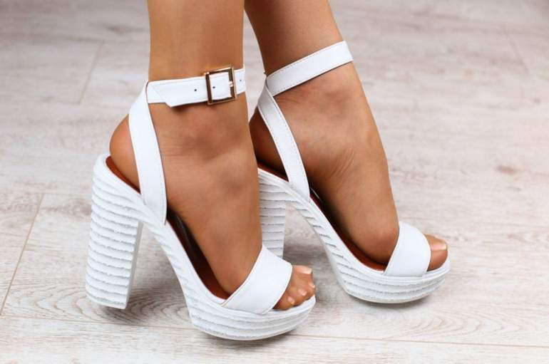 Белоснежные босоножки на каблуке.