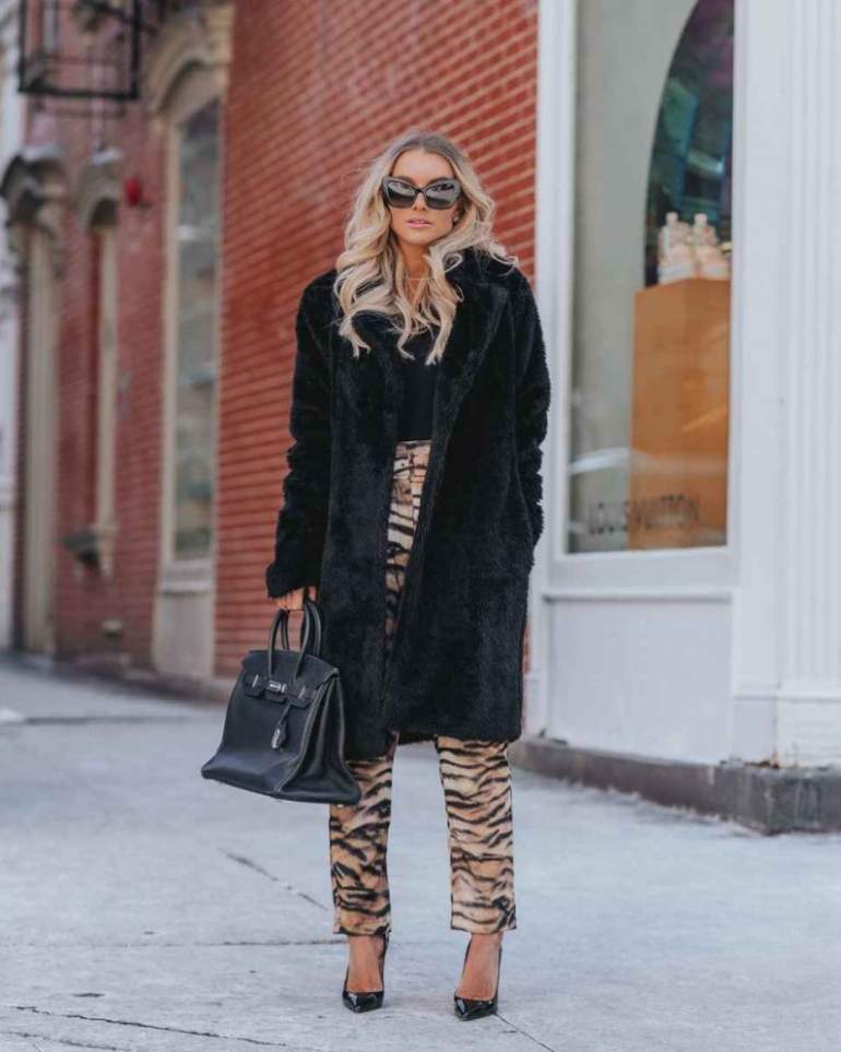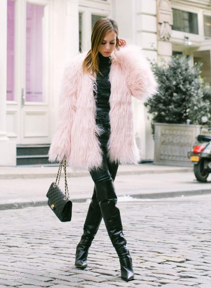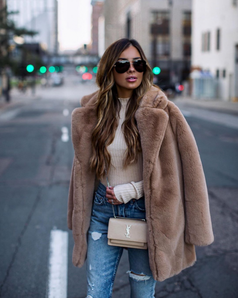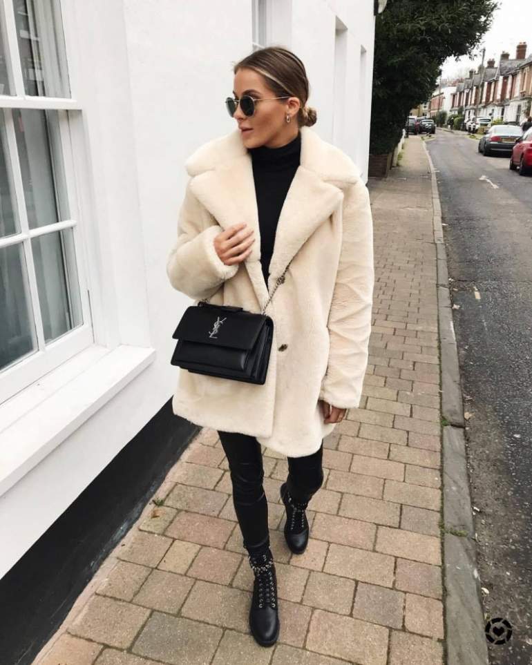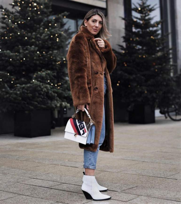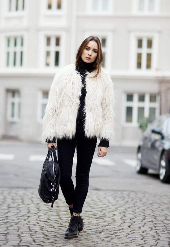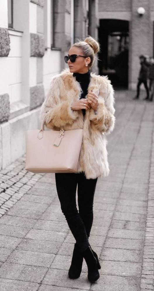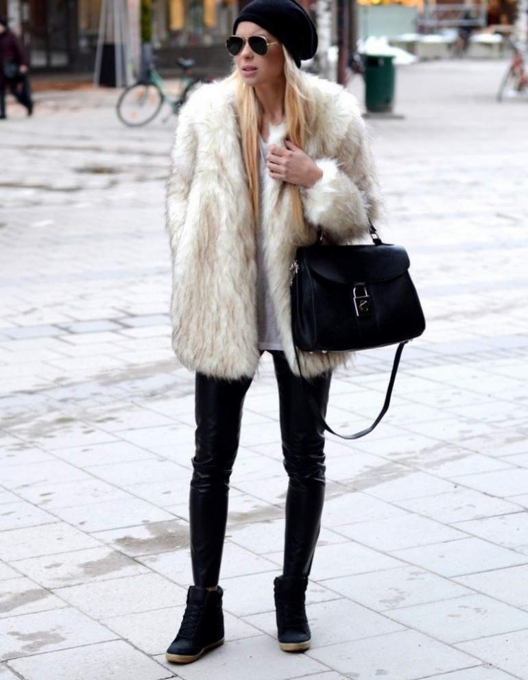 Лук с пальто из искусственного меха