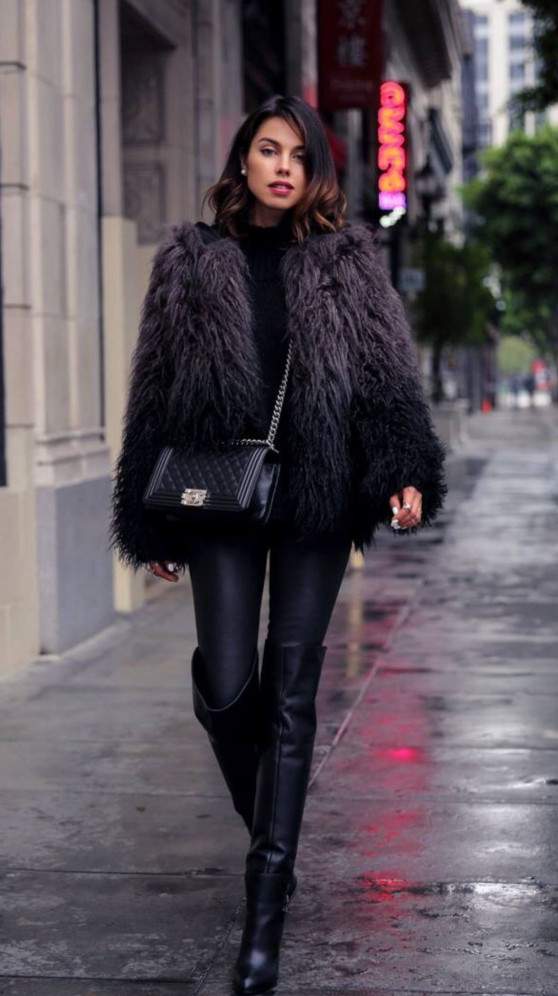 Шуба с кожаными брюками