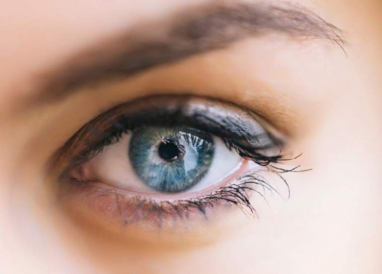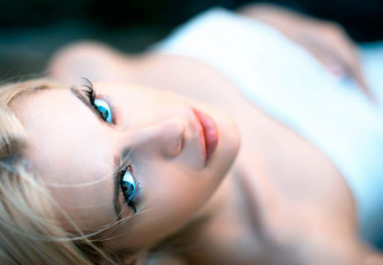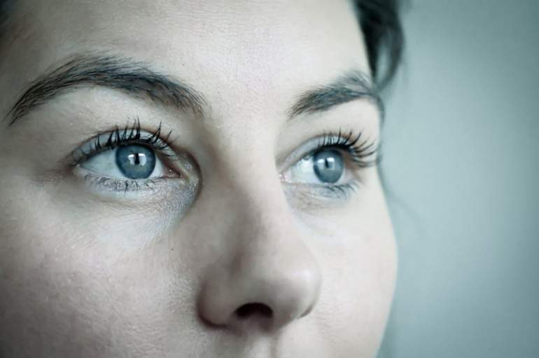 Голубые дамские глаза с длинноватыми темными ресничками.