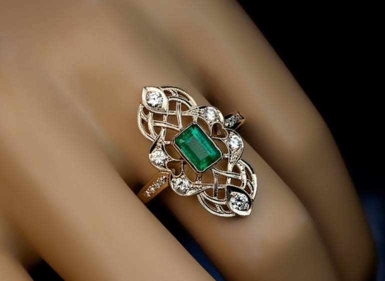 Старинное кольцо с крупным изумрудом.