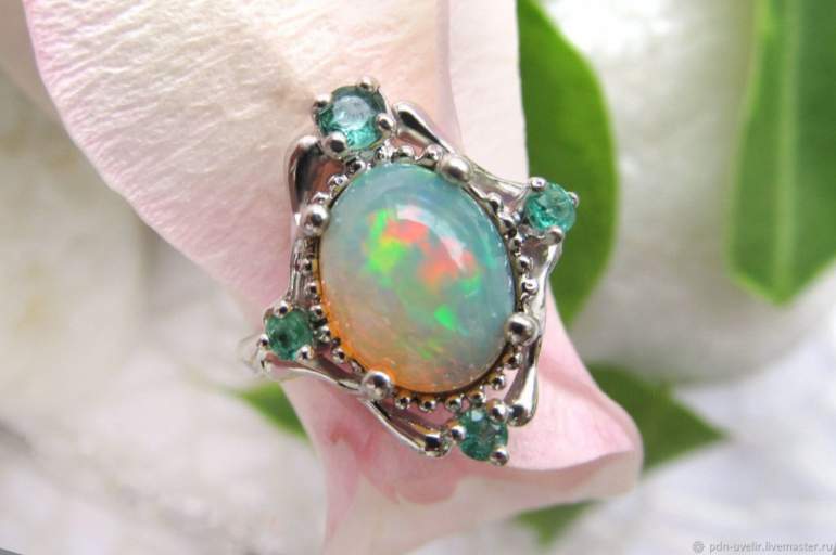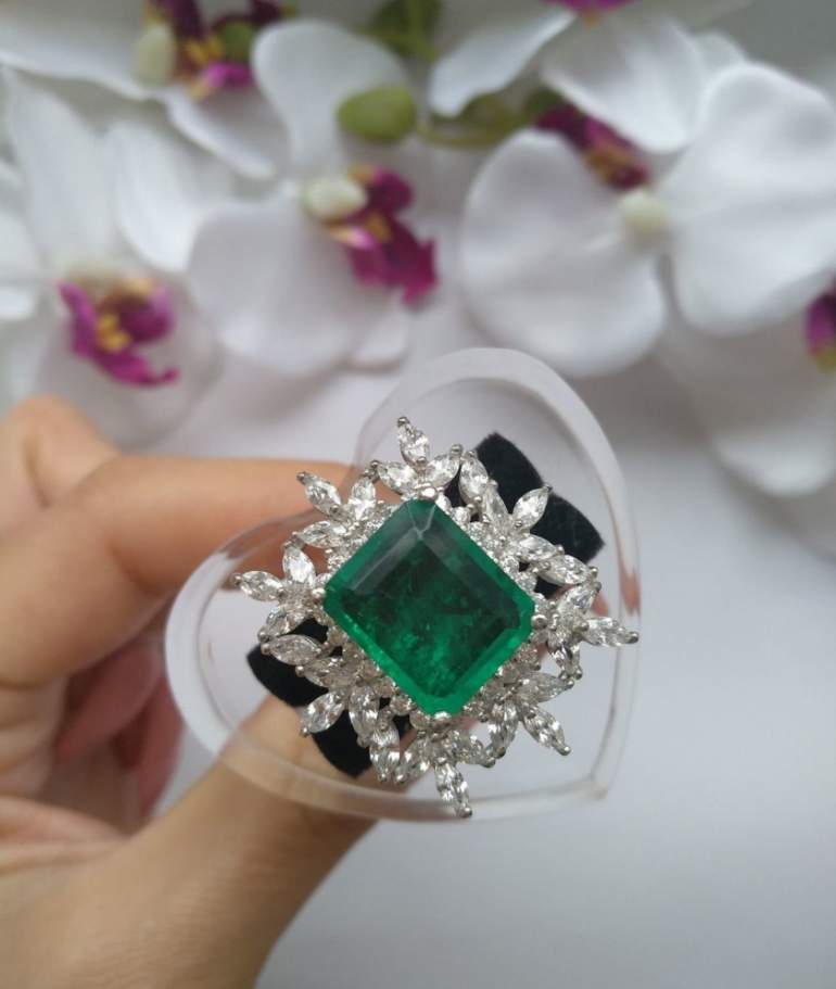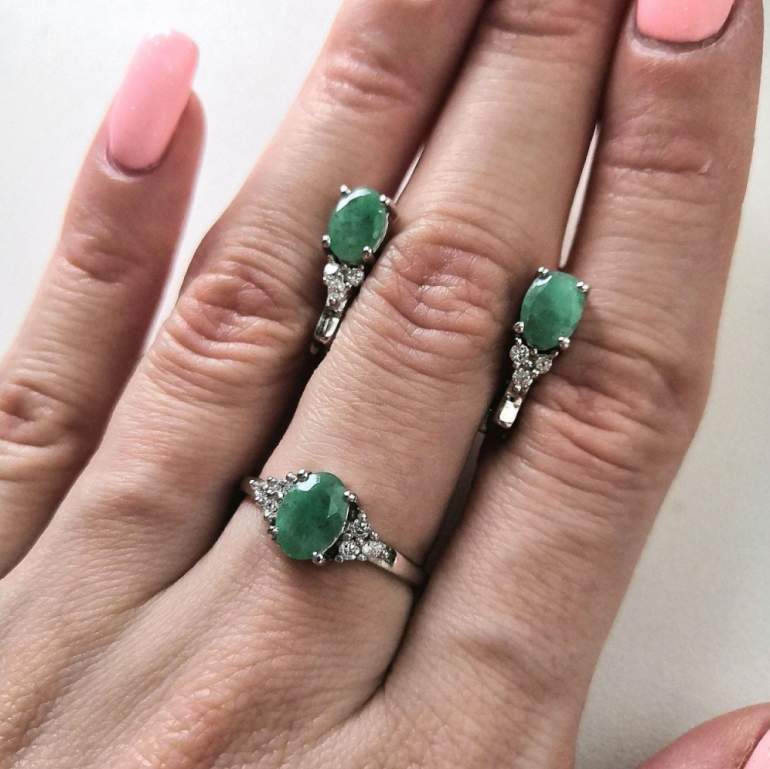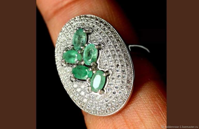 Изумрудный цвет кольца.