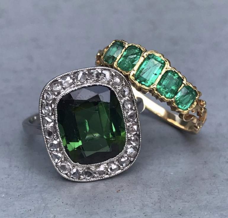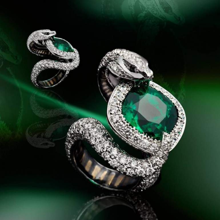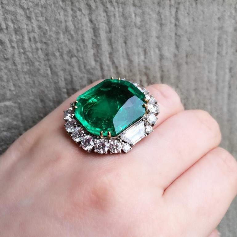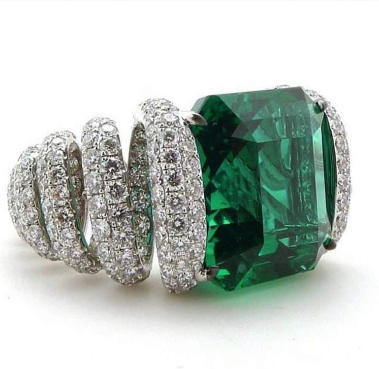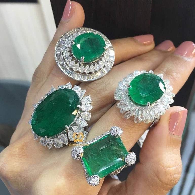 Кольца с огромными изумрудами.