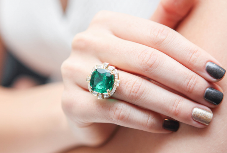 Девушка красавица с изумрудным кольцом.