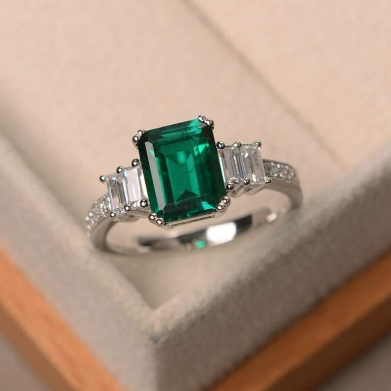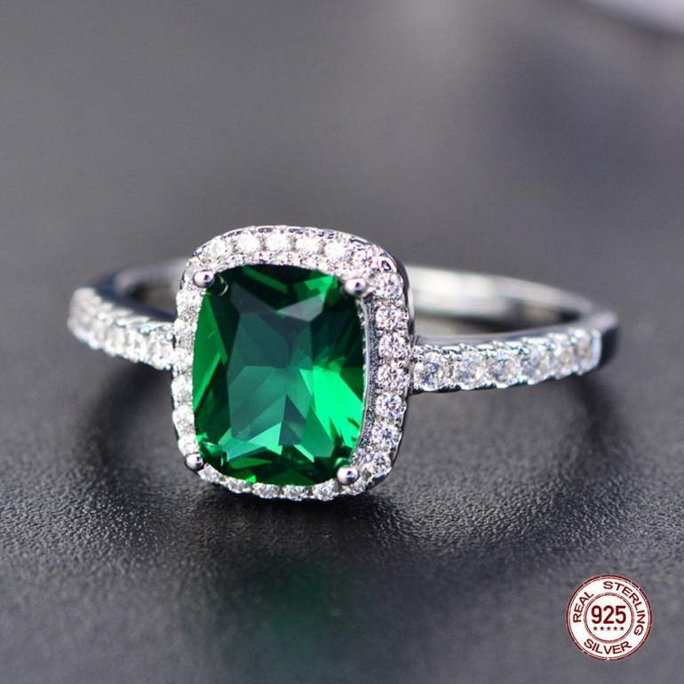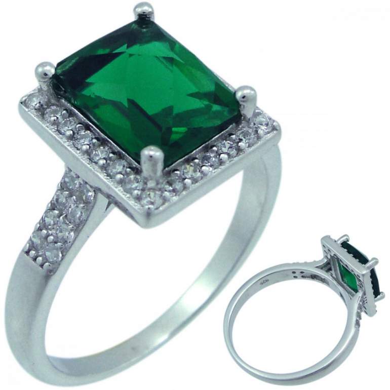 925 Проба серебра кольцо с изумрудом.