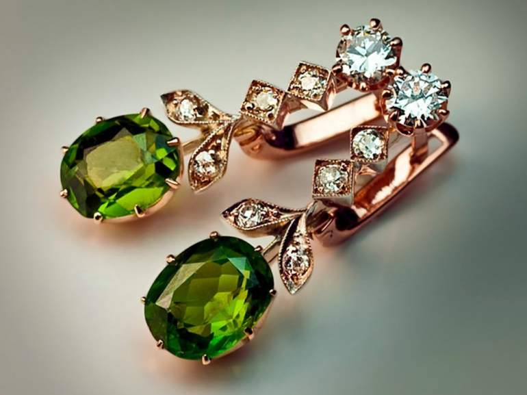 Декорации с изумрудами сережки.