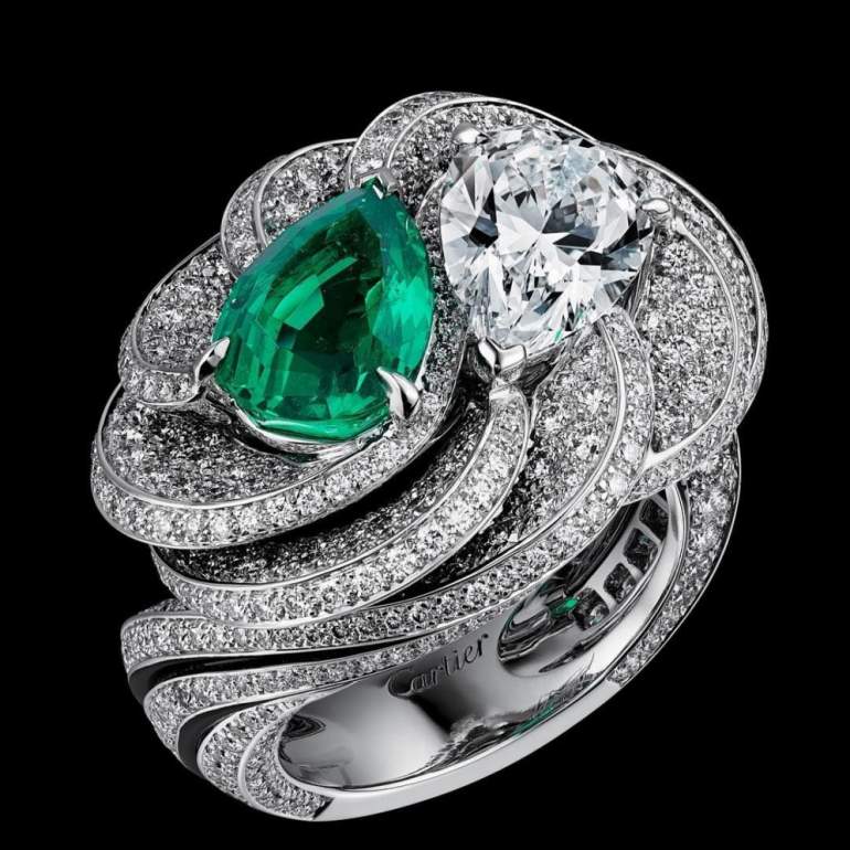 Кольцо Картье с изумрудом и бриллиантами.