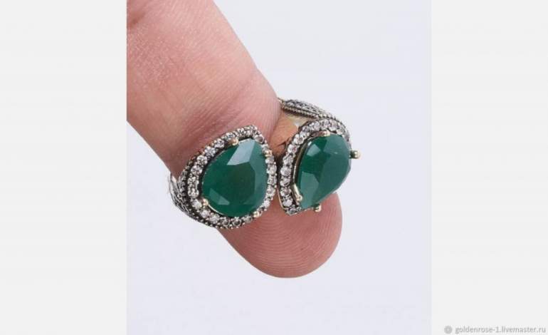 Дамские кольца с изумрудом ручная работа.