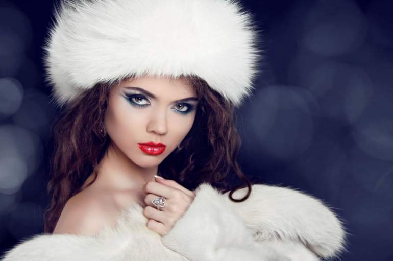 Девушка красавица в шубе в зимнюю пору.