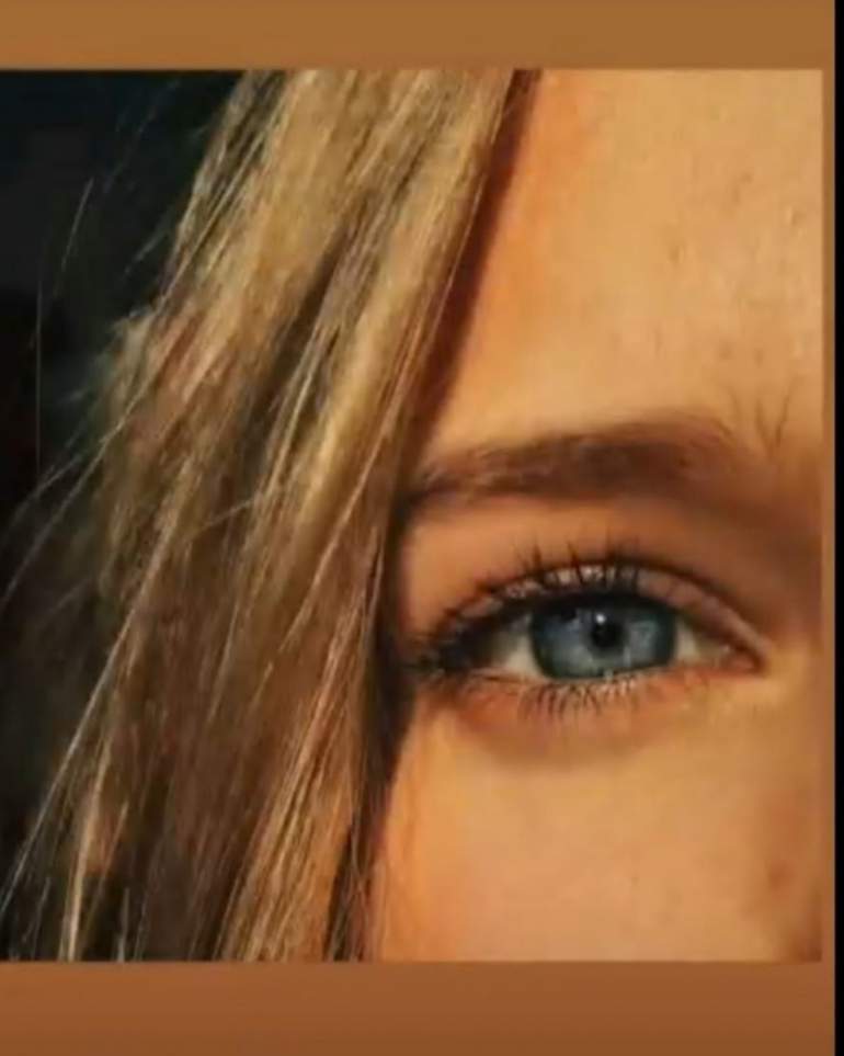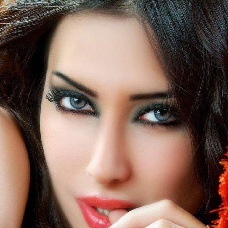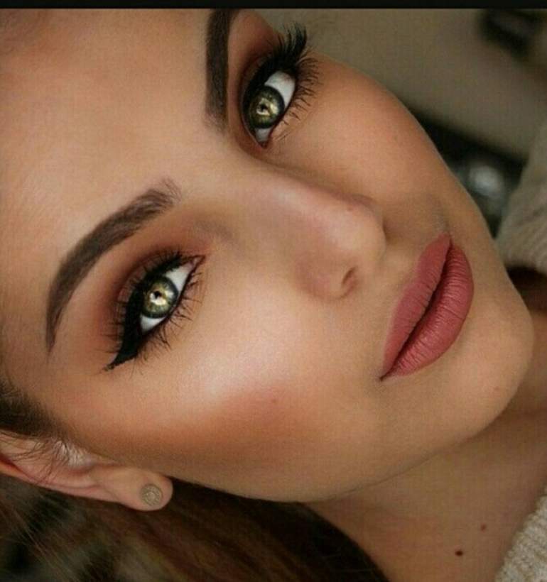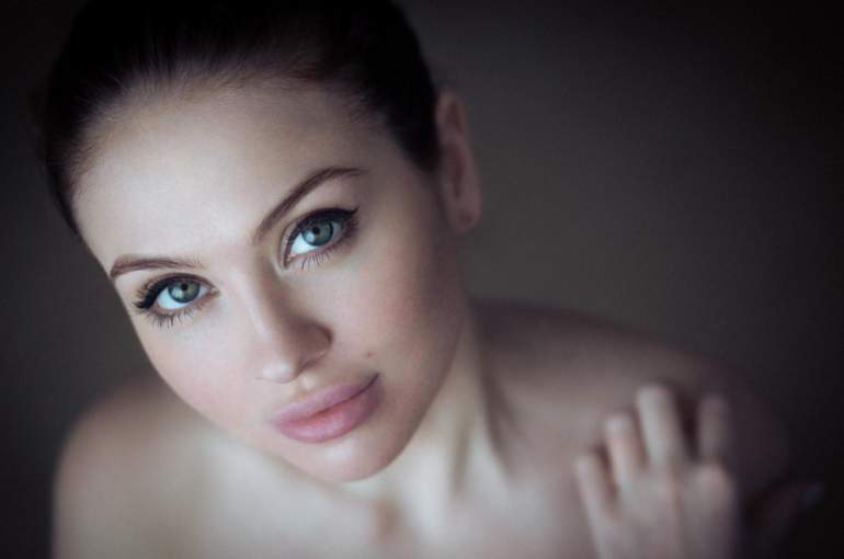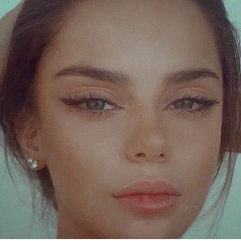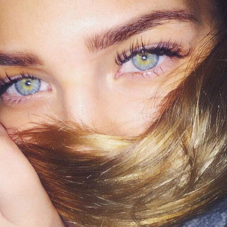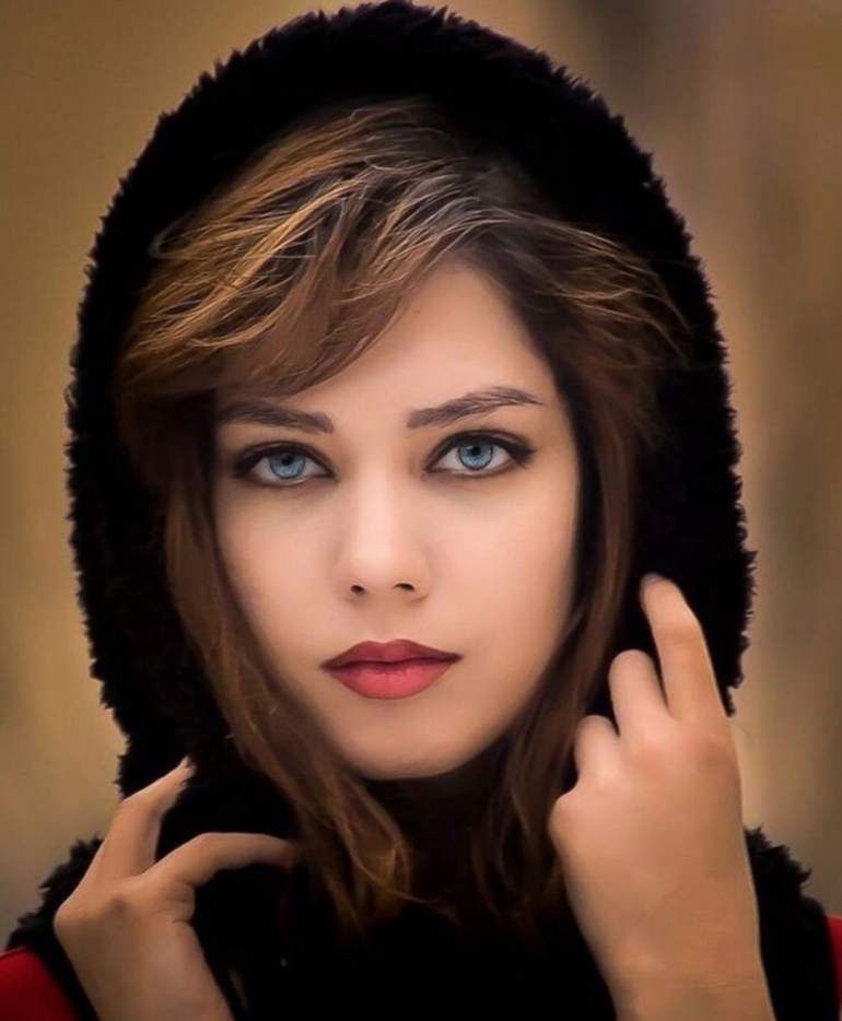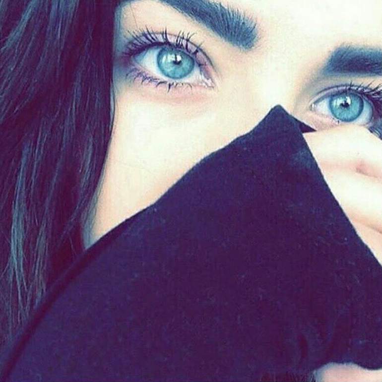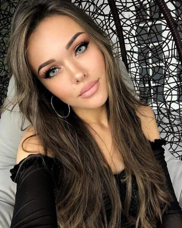 Девушка красавица с каштановыми волосами и голубыми очами.