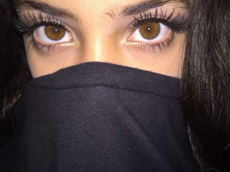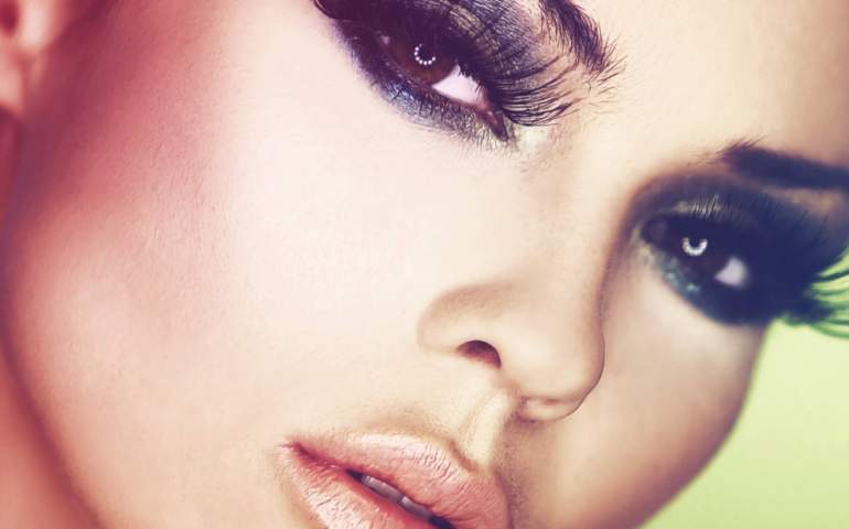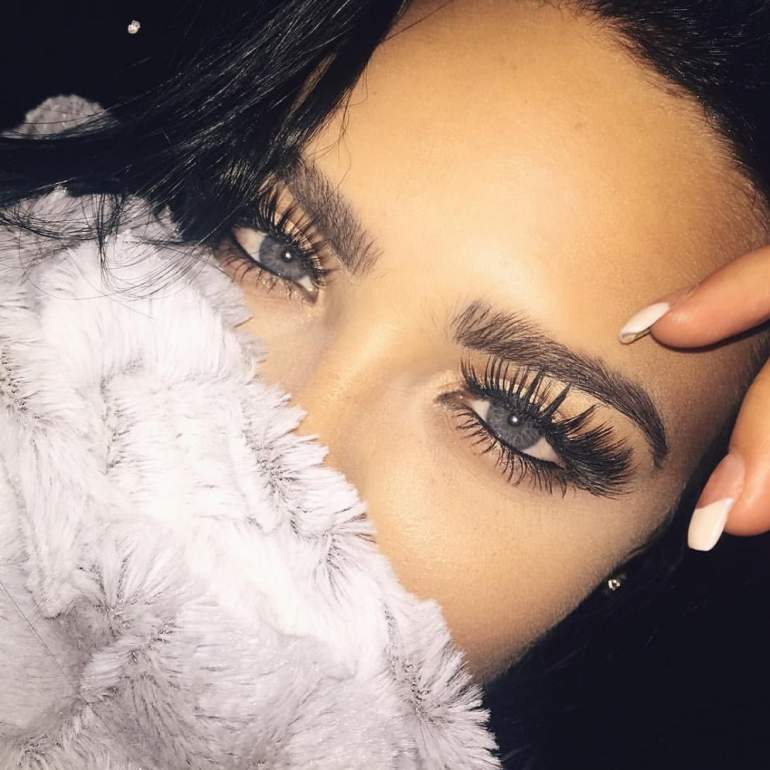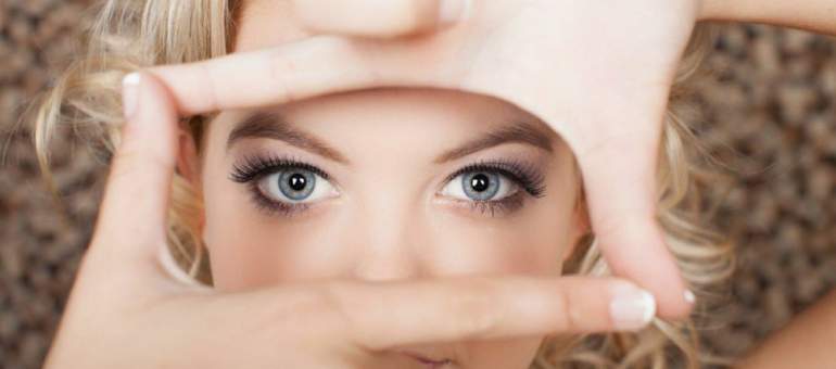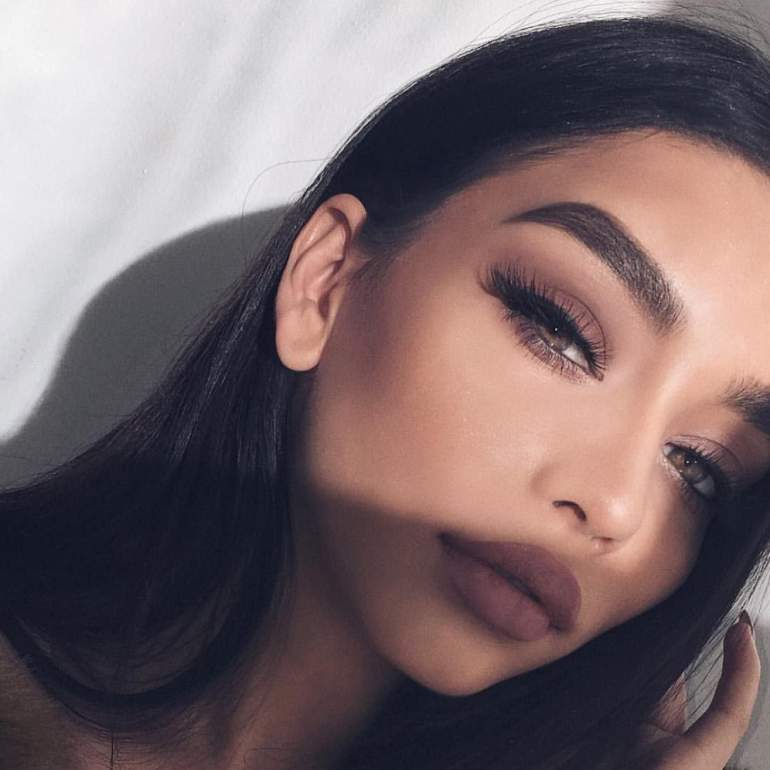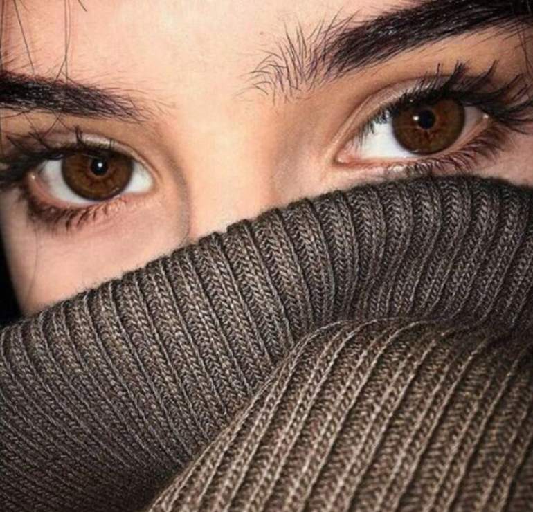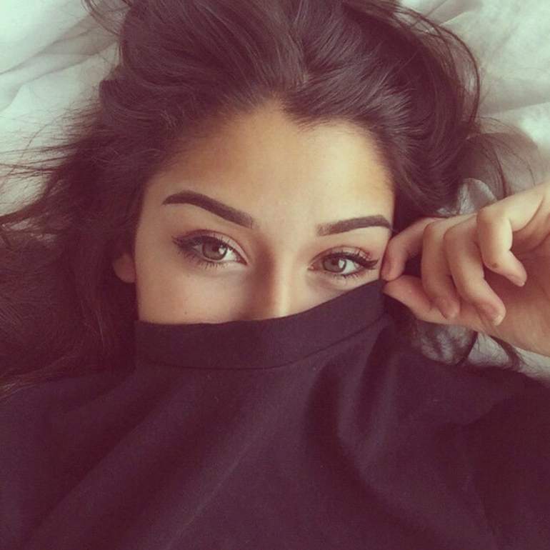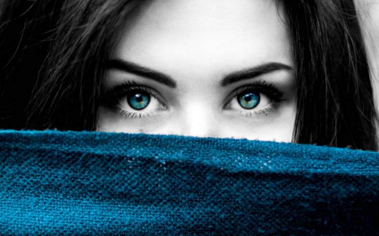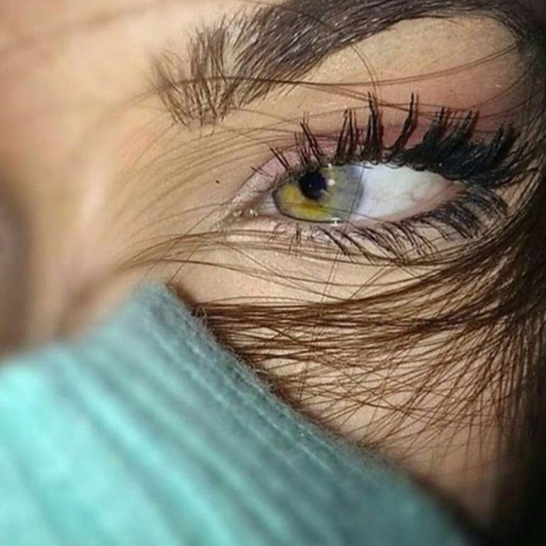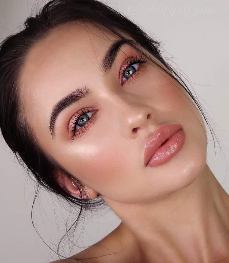 Девушка красавица с каштановыми волосами и голубыми очами.