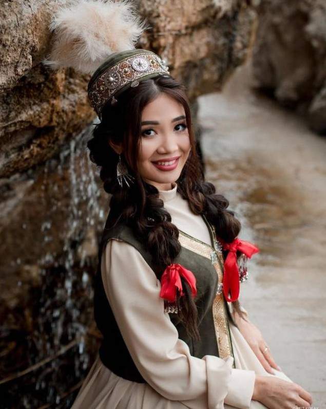 Государственный костюмчик казашки в горах.