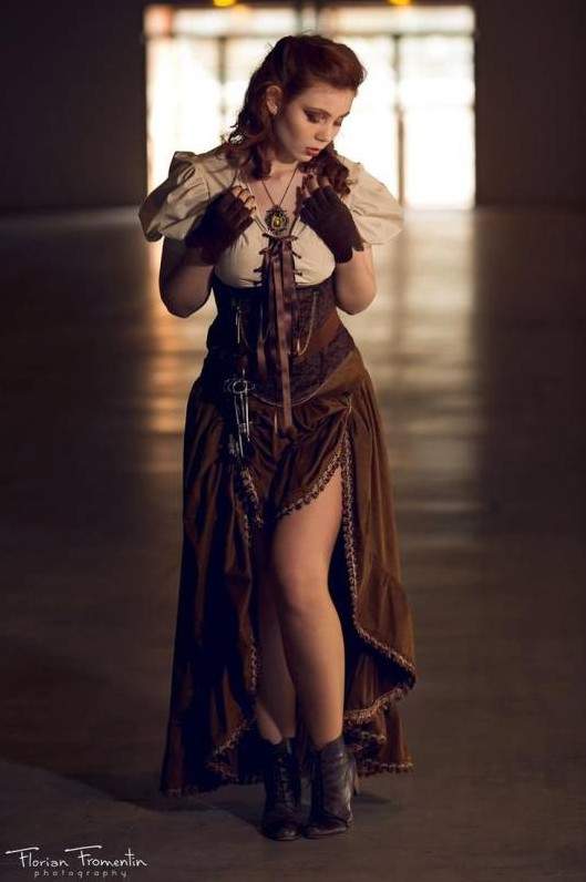 Милая женщина в красивое платье стимпанк.