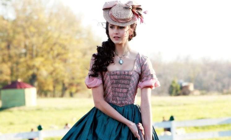 Милая женщина в древнем красивое платье.