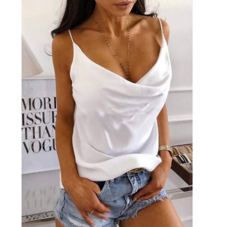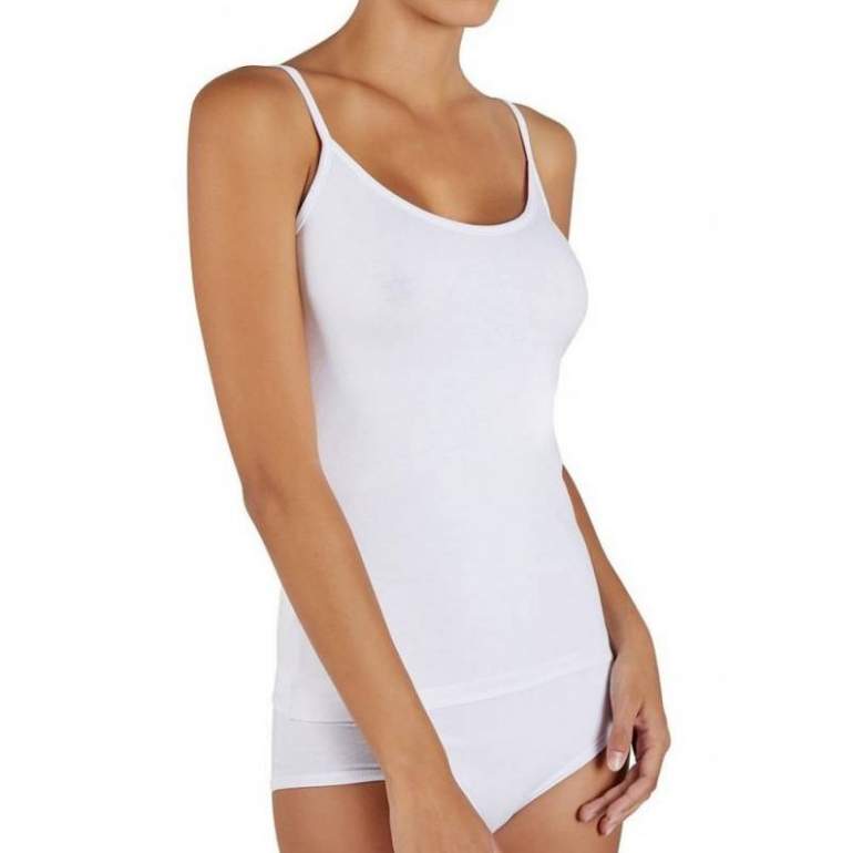 Белоснежная шелковая майка на бретельках.