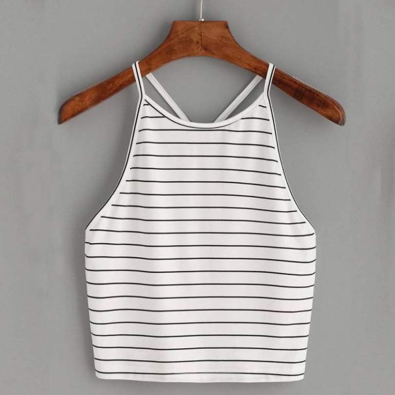 Кроп топ на бретелях.