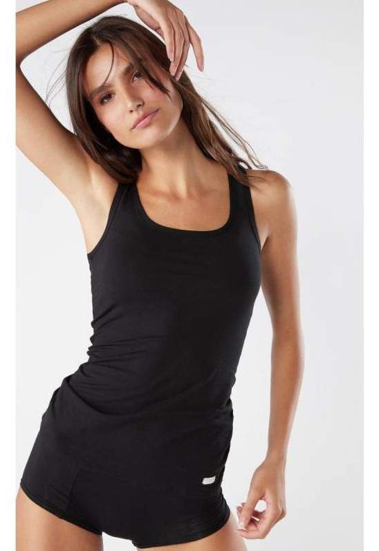 Майка темная женская на широких лямках.