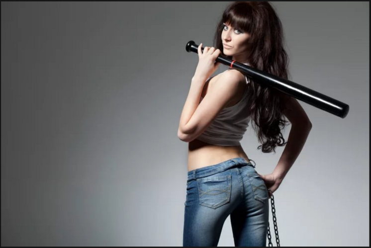 Сексуальная женщина с битой.