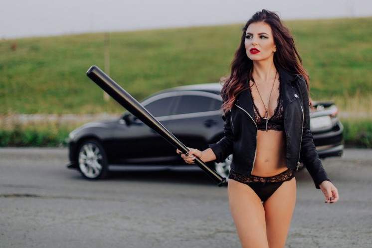 Фотосессия с битой для милых женщин.