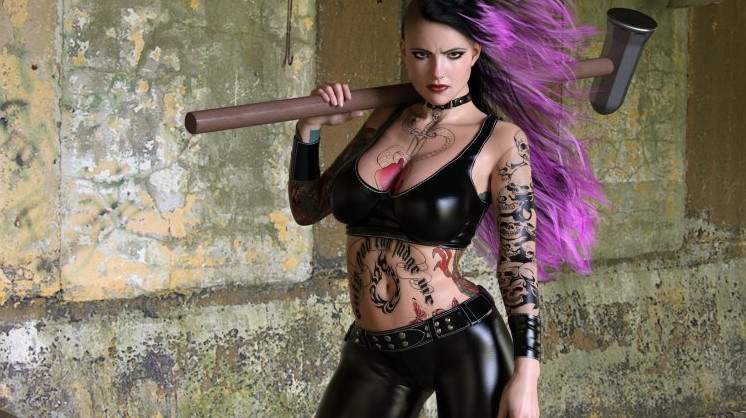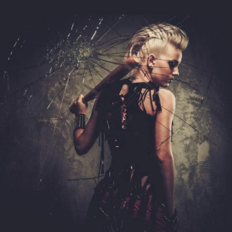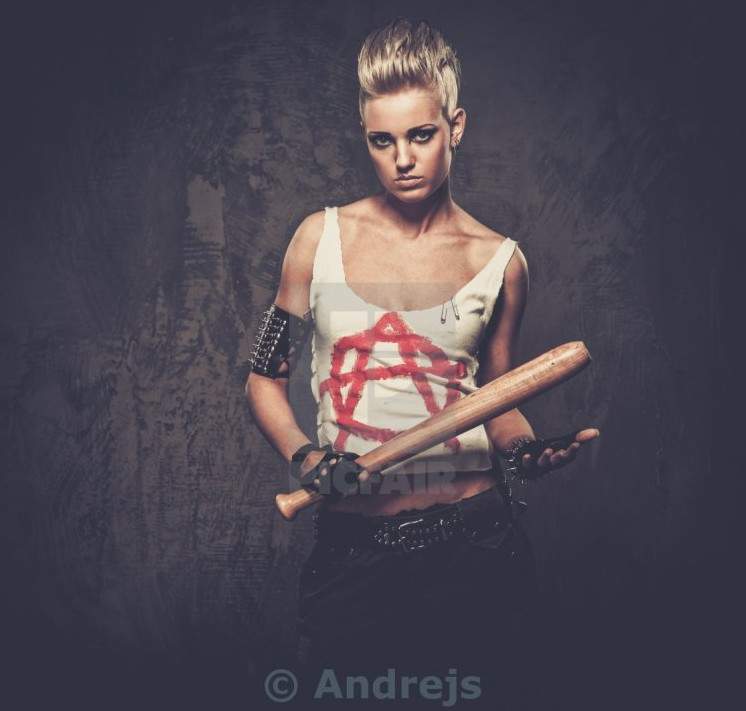 Милая женщина панк с бейсбольной битой.