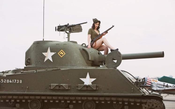 Сексуальные женщины и танки Шерман м 4.