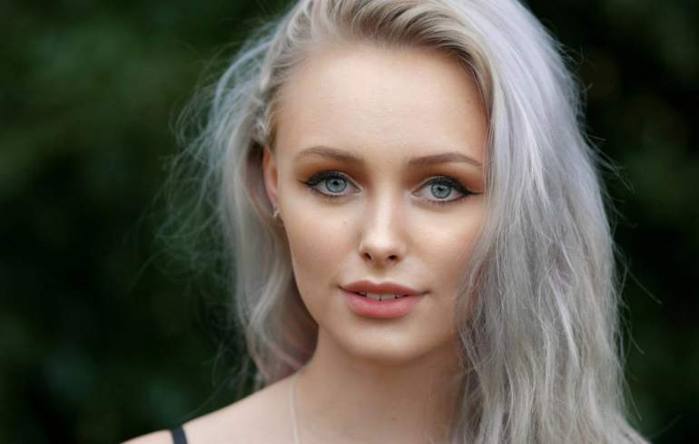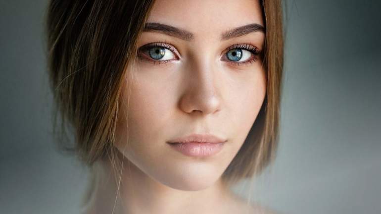 Девушка красотка с сероватыми очами.