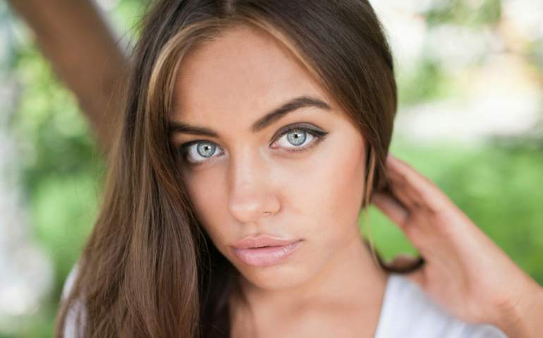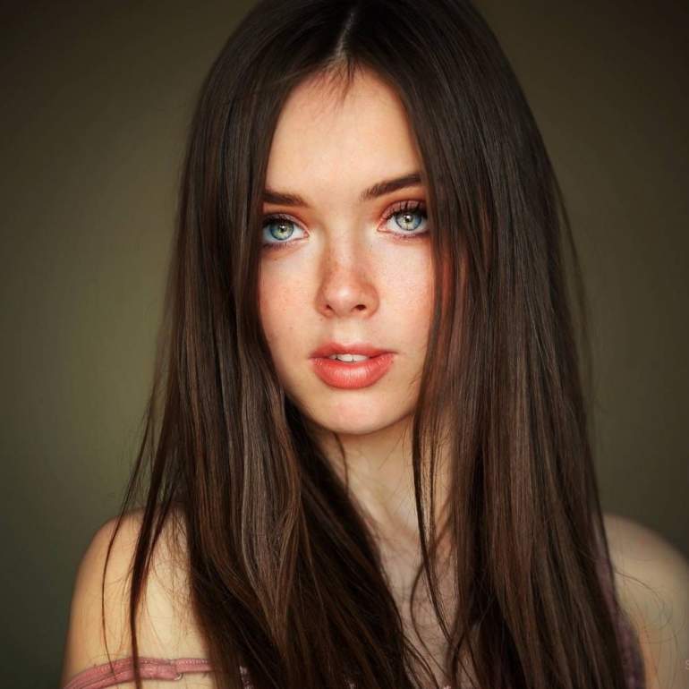Шатенка с сероватыми очами.
