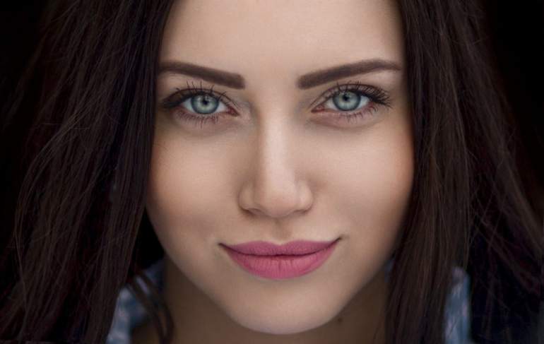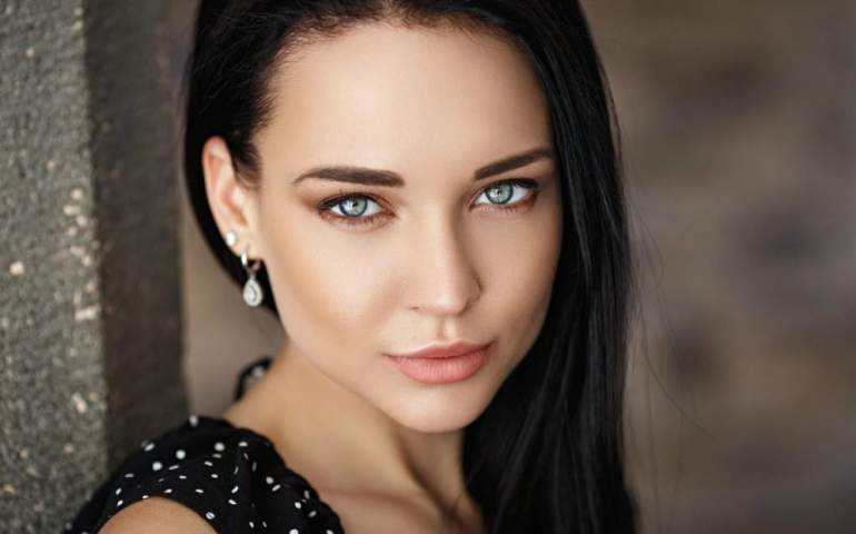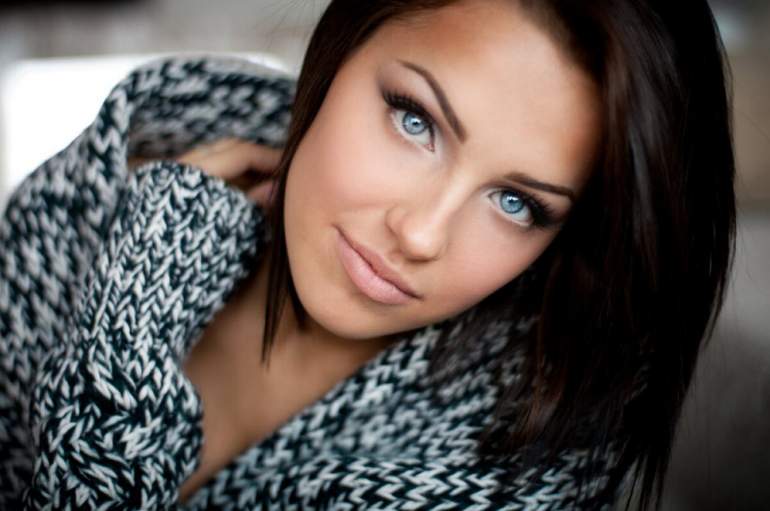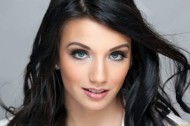 Брюнетка с голубыми очами.