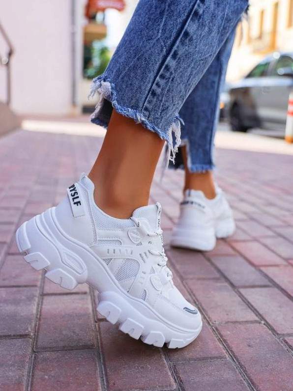 Белоснежные большие кроссовки.