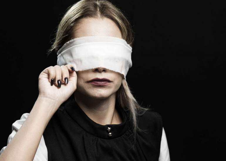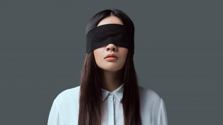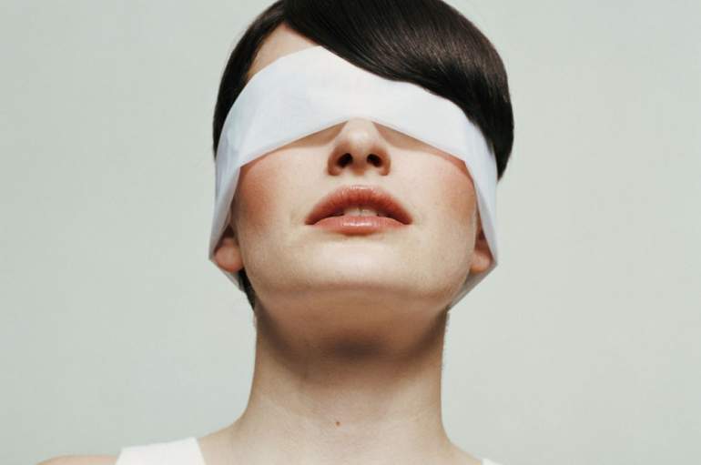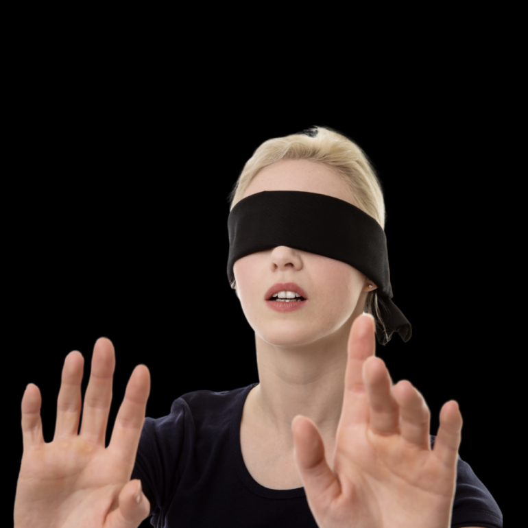 Человек с повязкой на глазах.