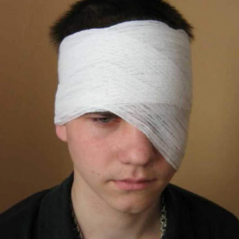 Бинтовая повязка на глаз.