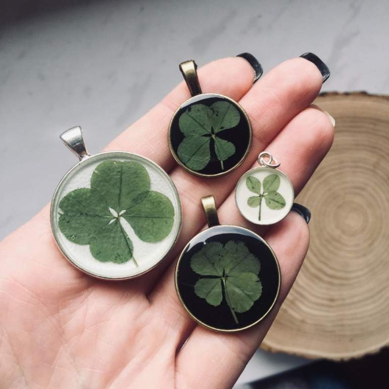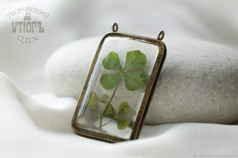 Четырёхлистный Клевер талисман идол в эпоксидка.