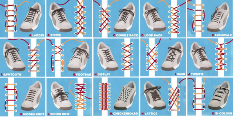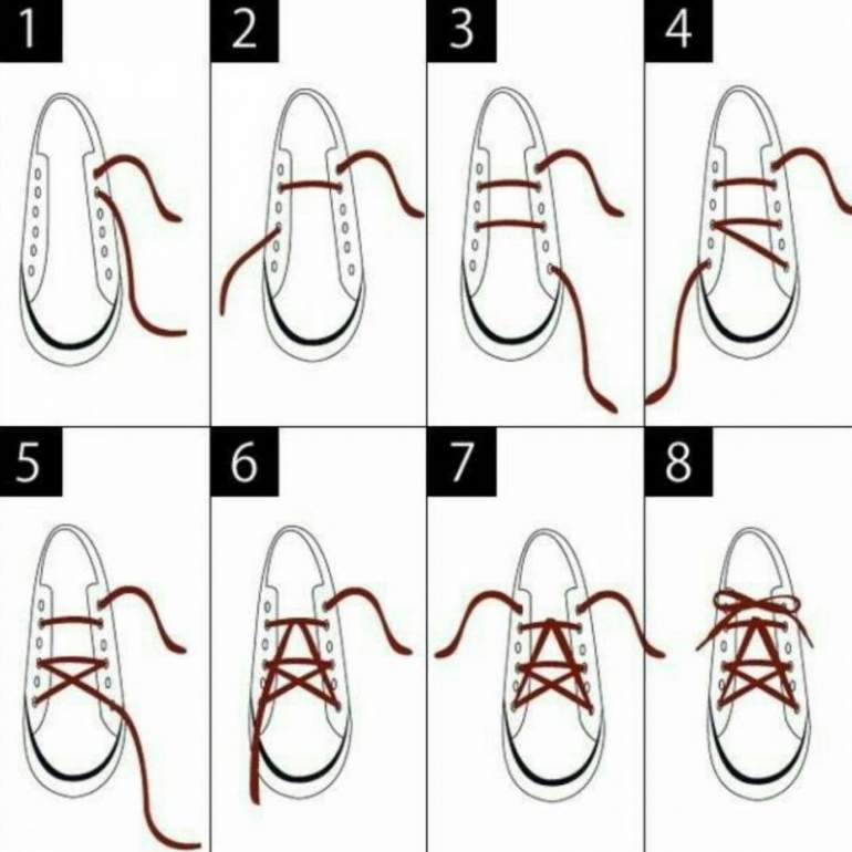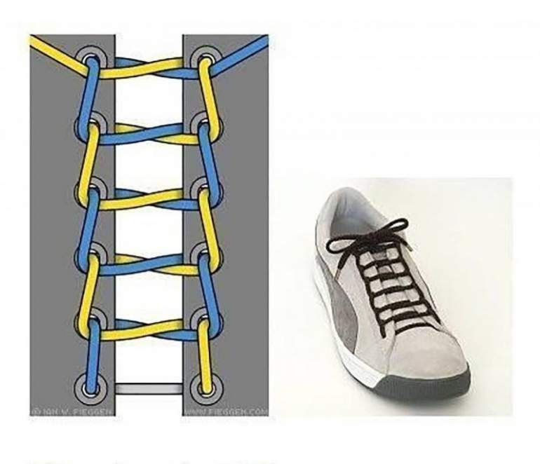 Способы завязывания шнурков на кедах.