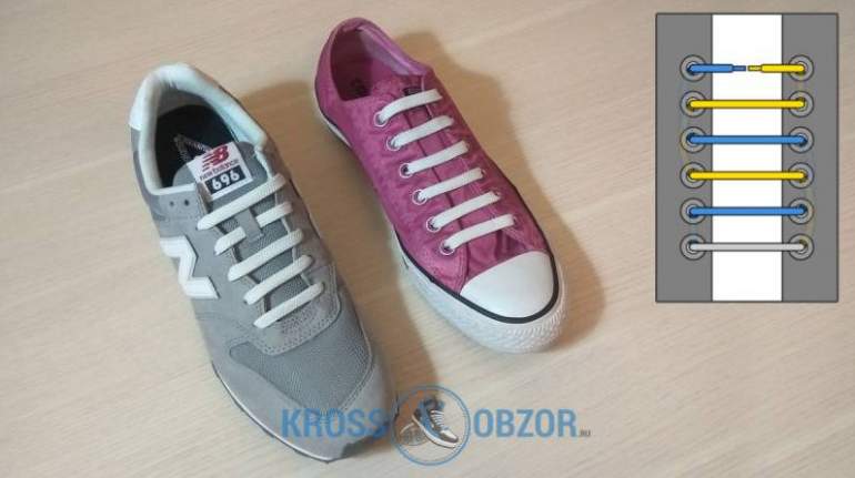 Шнурование кед с 6 дырками.