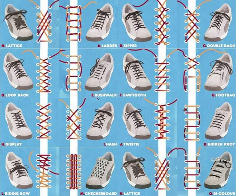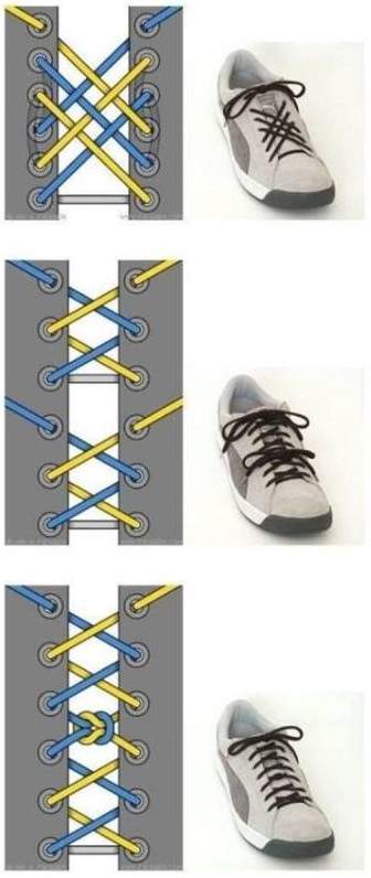 Способы зашнуровать шнурки.