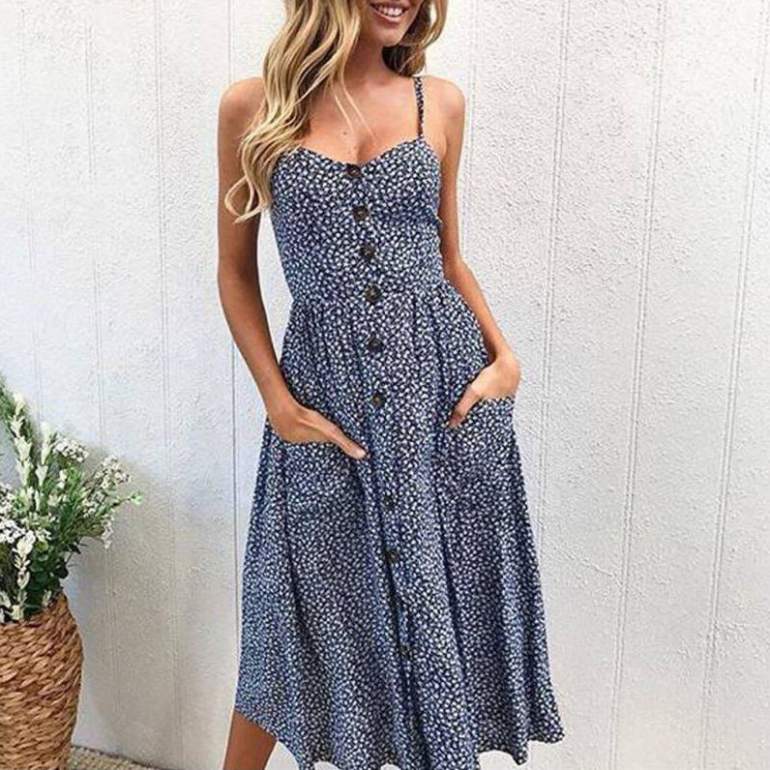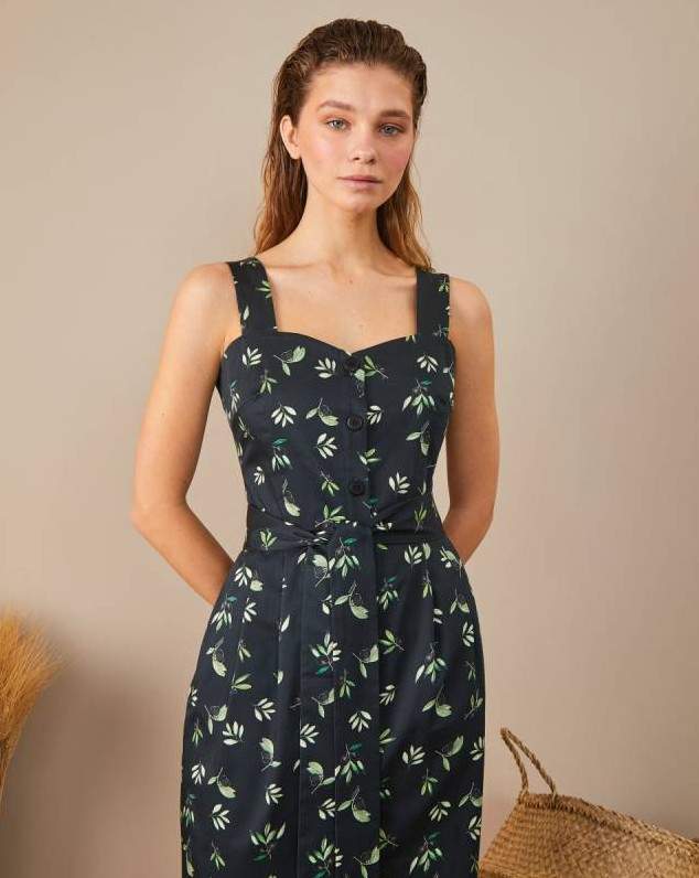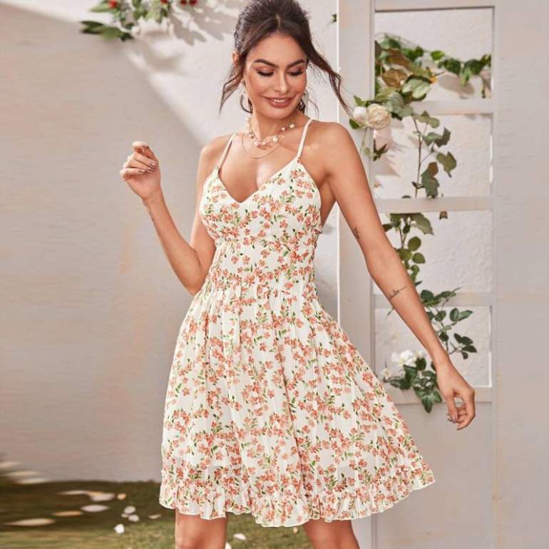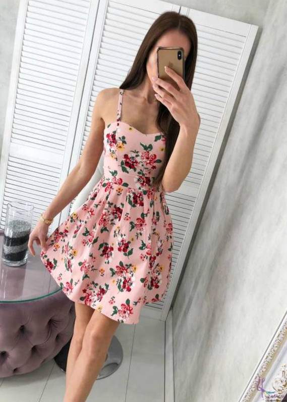 Летнее платье с Elegant Floral Square neckline Midi a-line Dress.