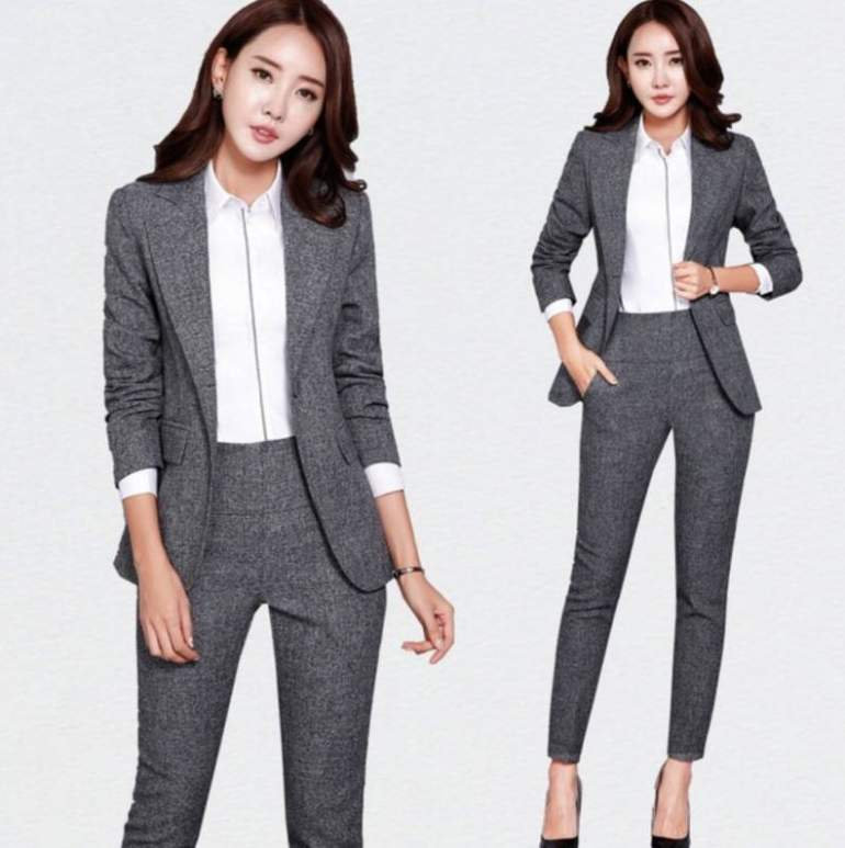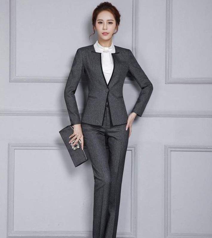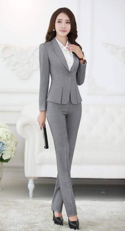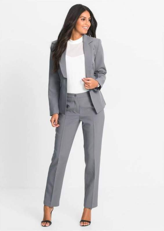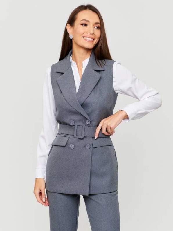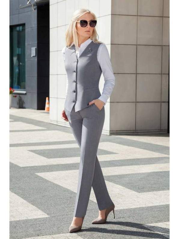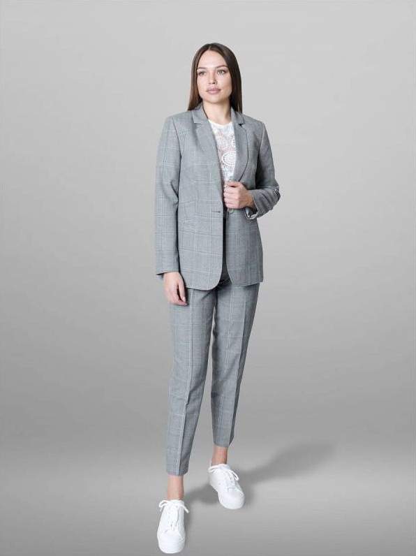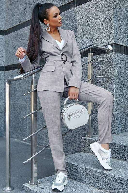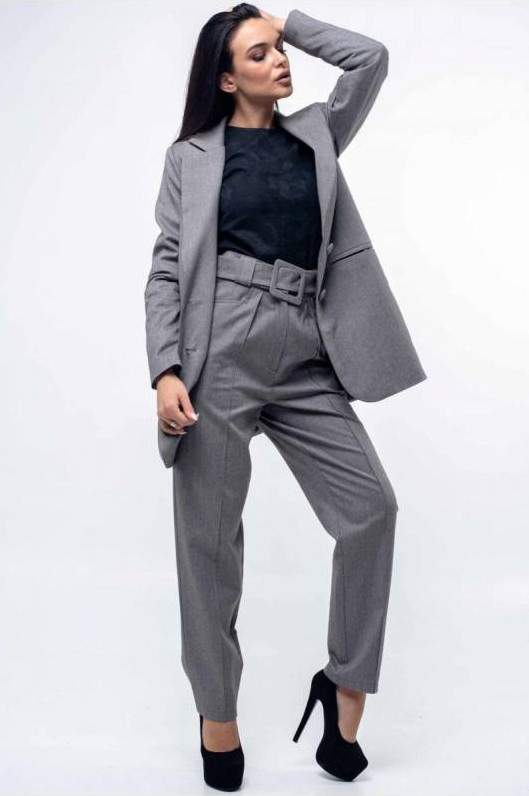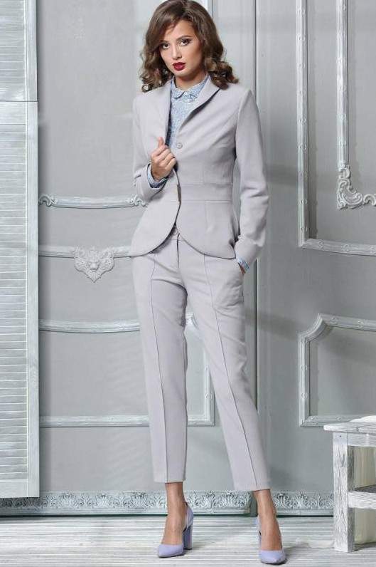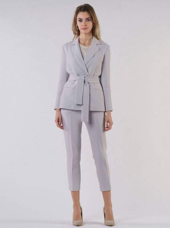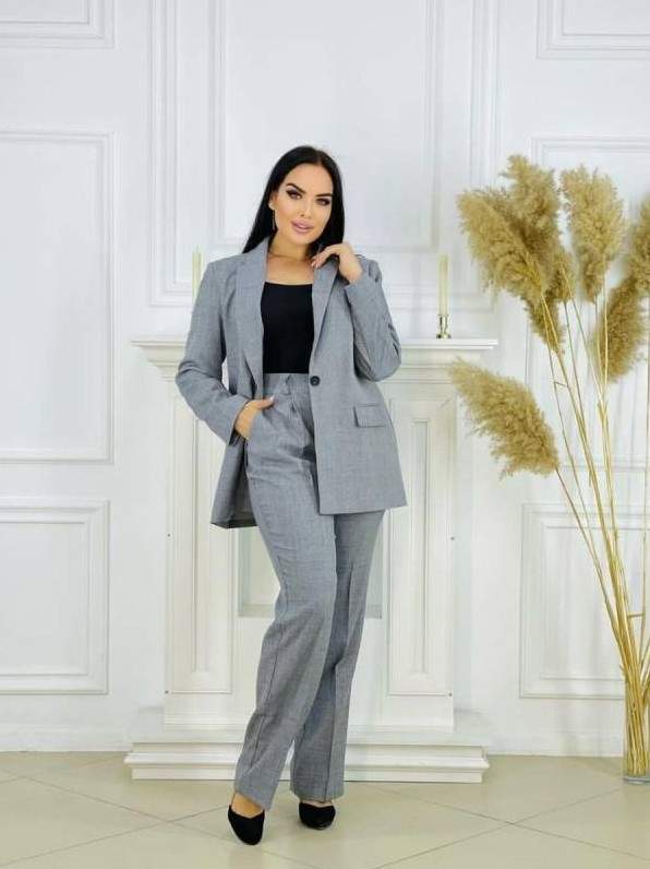 Сероватый брючный костюмчик дамский.