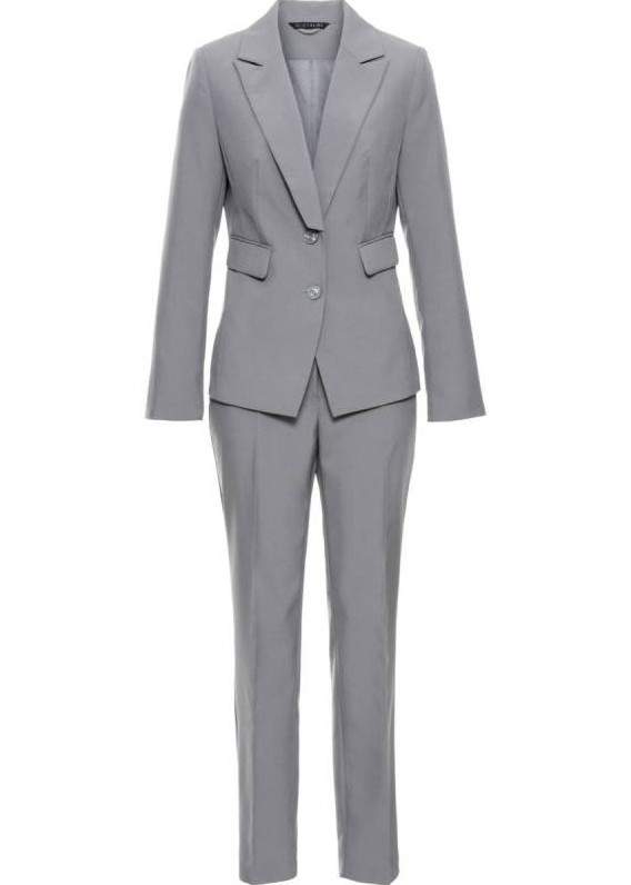 Сероватый классический костюмчик дамский.