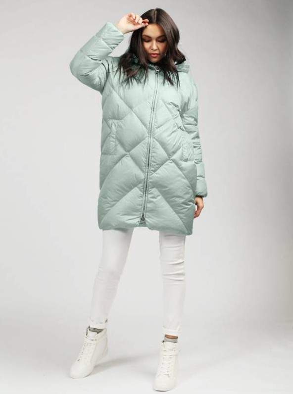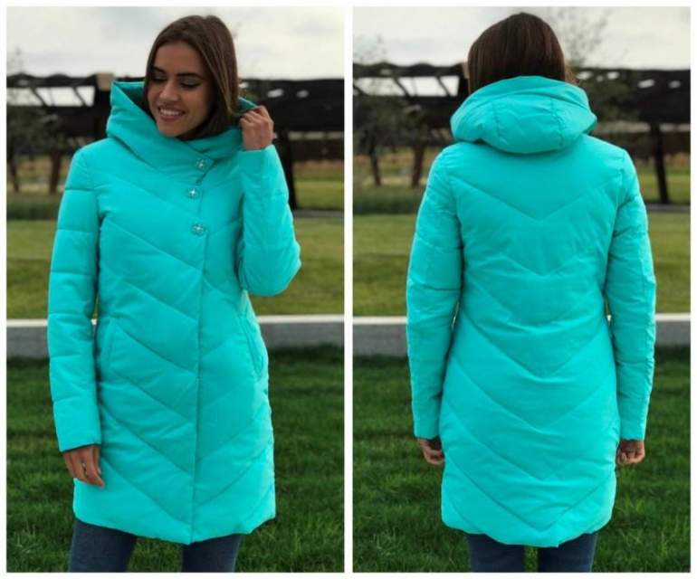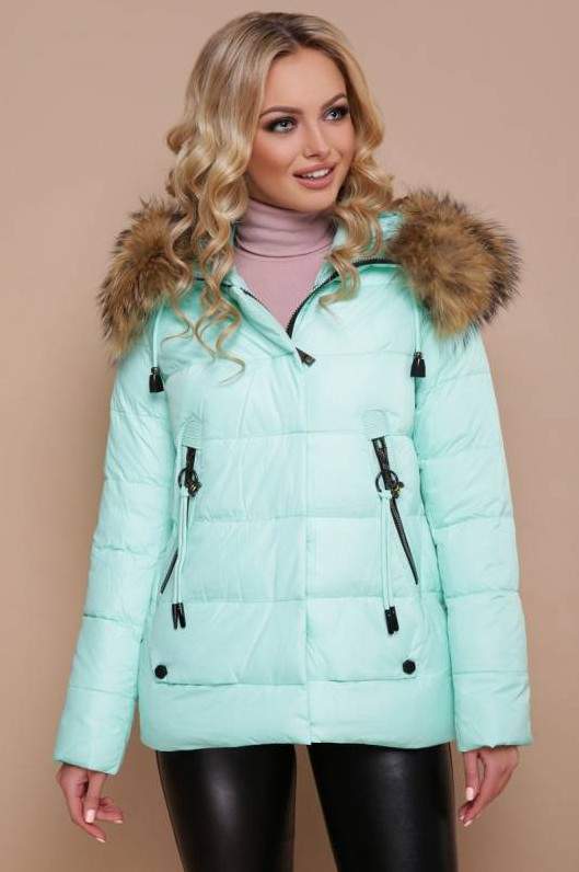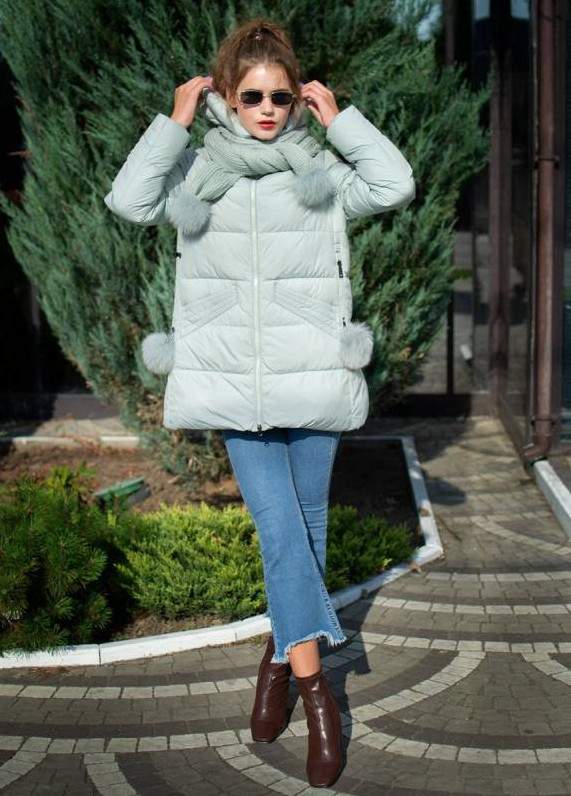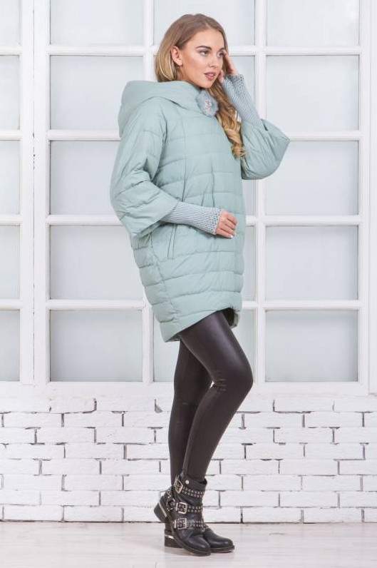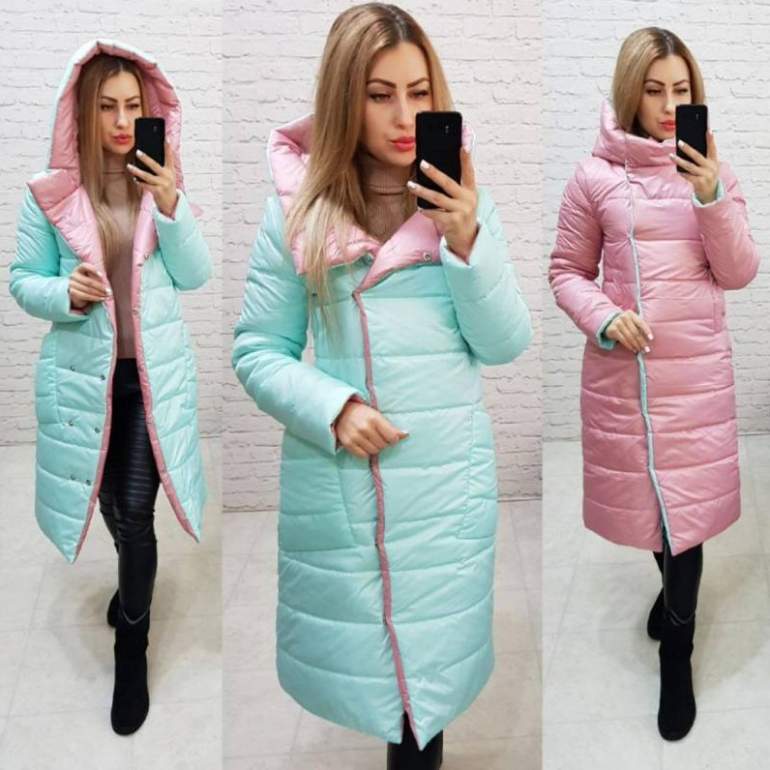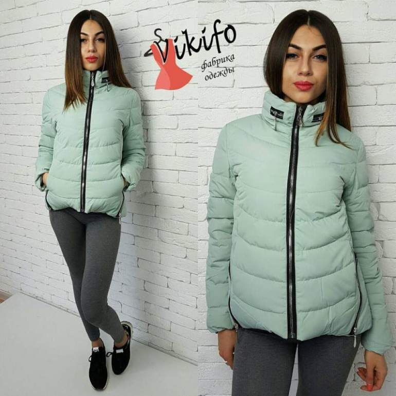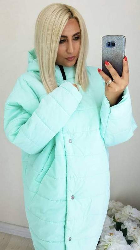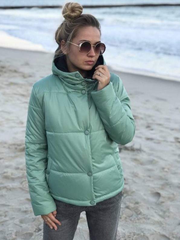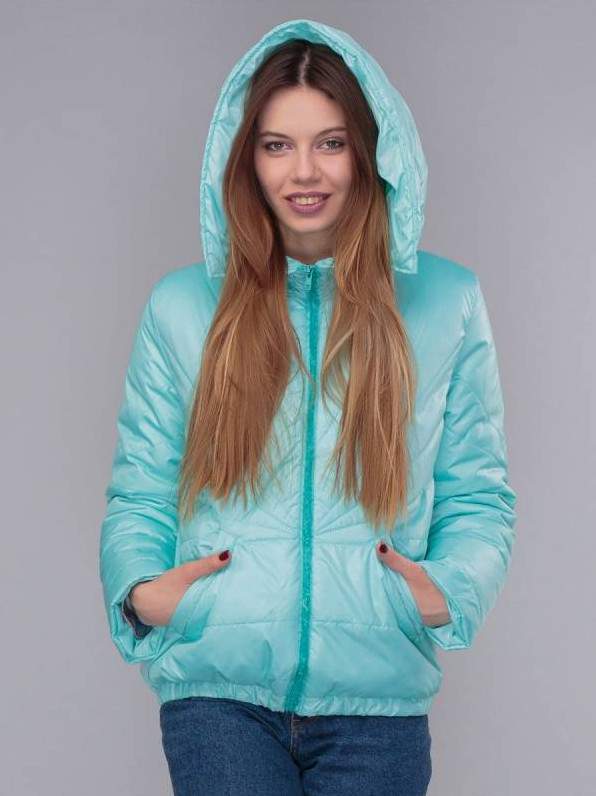 HR куртки дамские двухсторонняя мятного цвета с капюшоном.