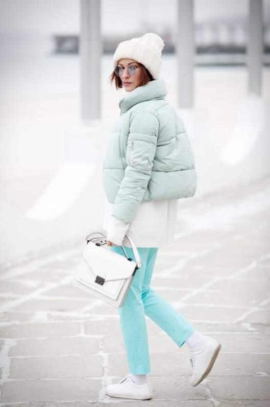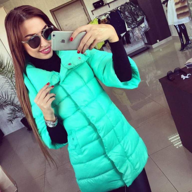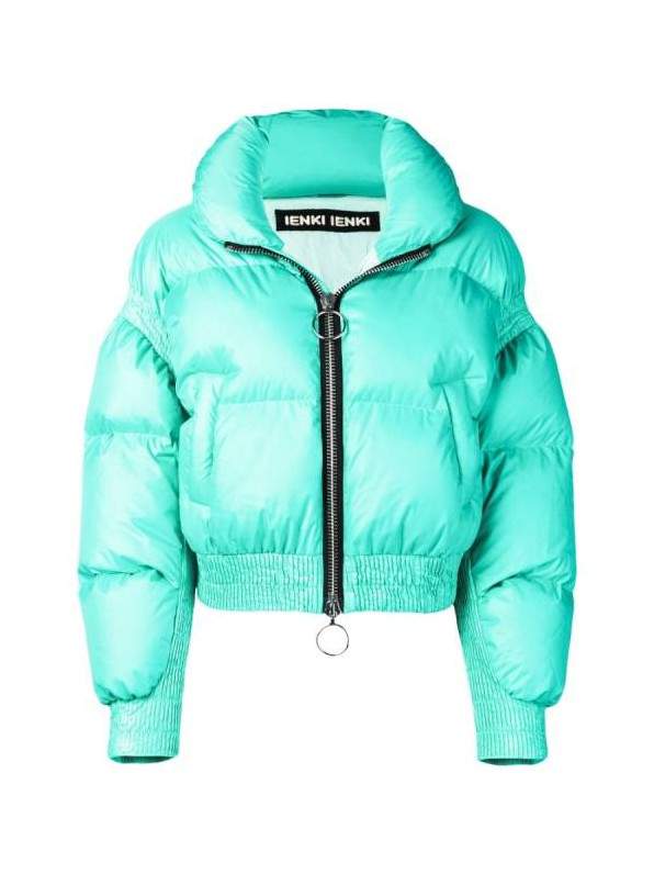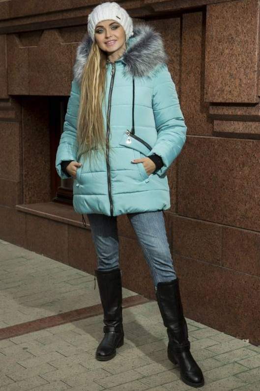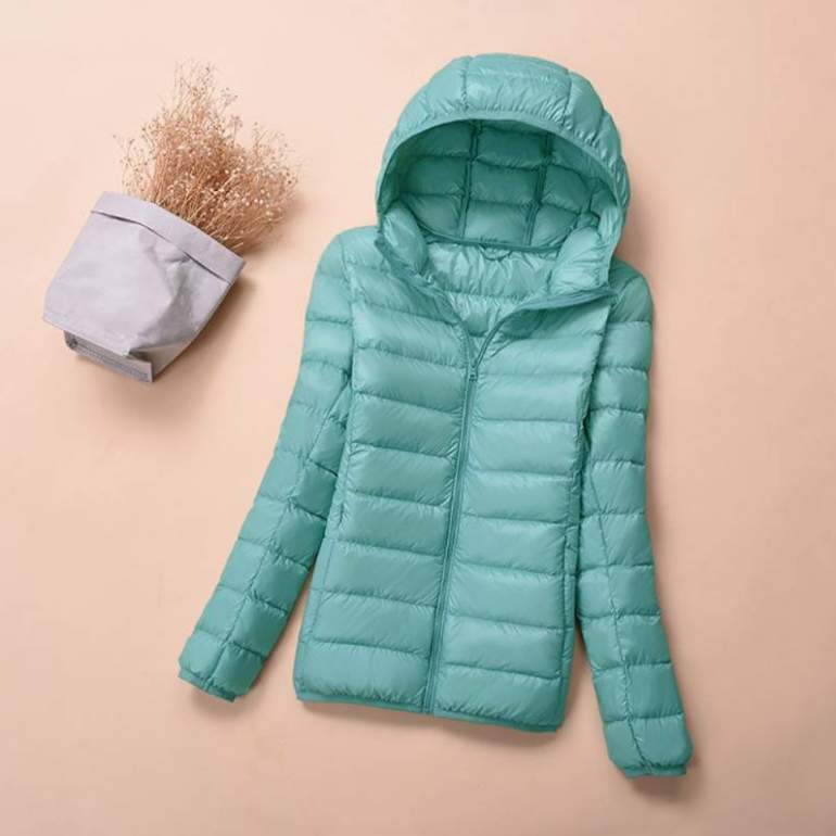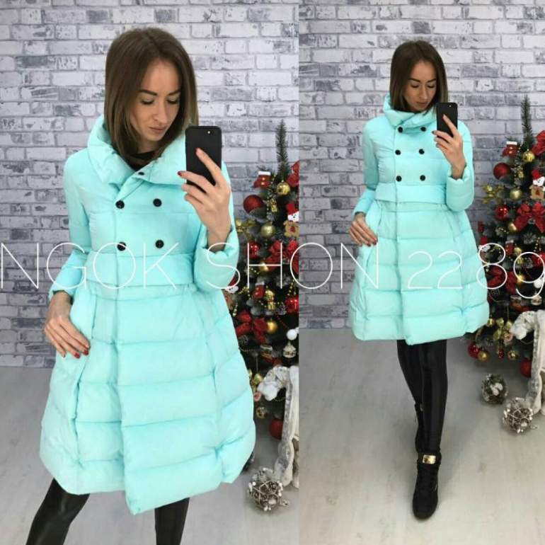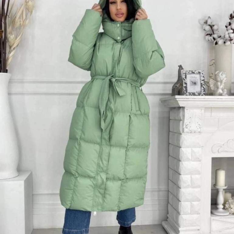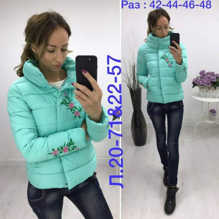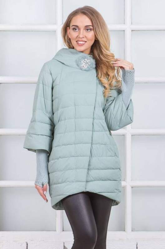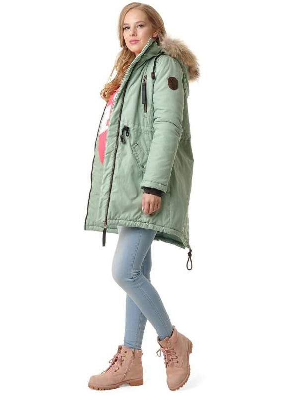 HR куртки дамские двухсторонняя мятного цвета с капюшоном.
